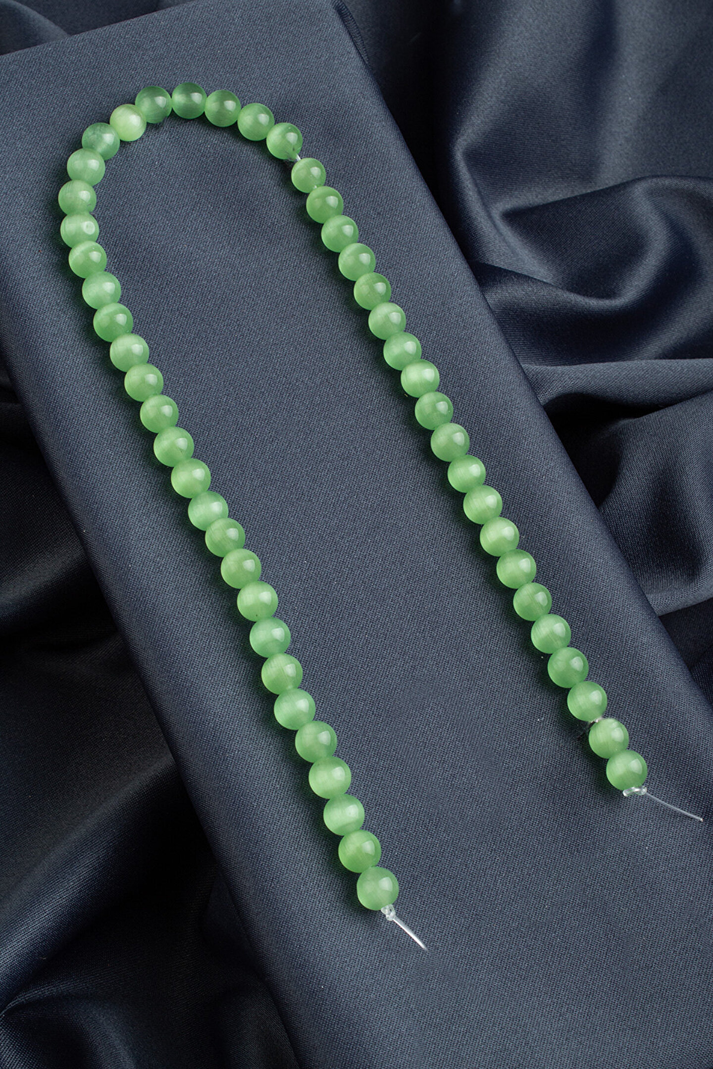 Uçar Doğaltaş Kedi Gözü Doğal Taş Parlak Yeşil Küre Kesim 8mm Dizi [B+]