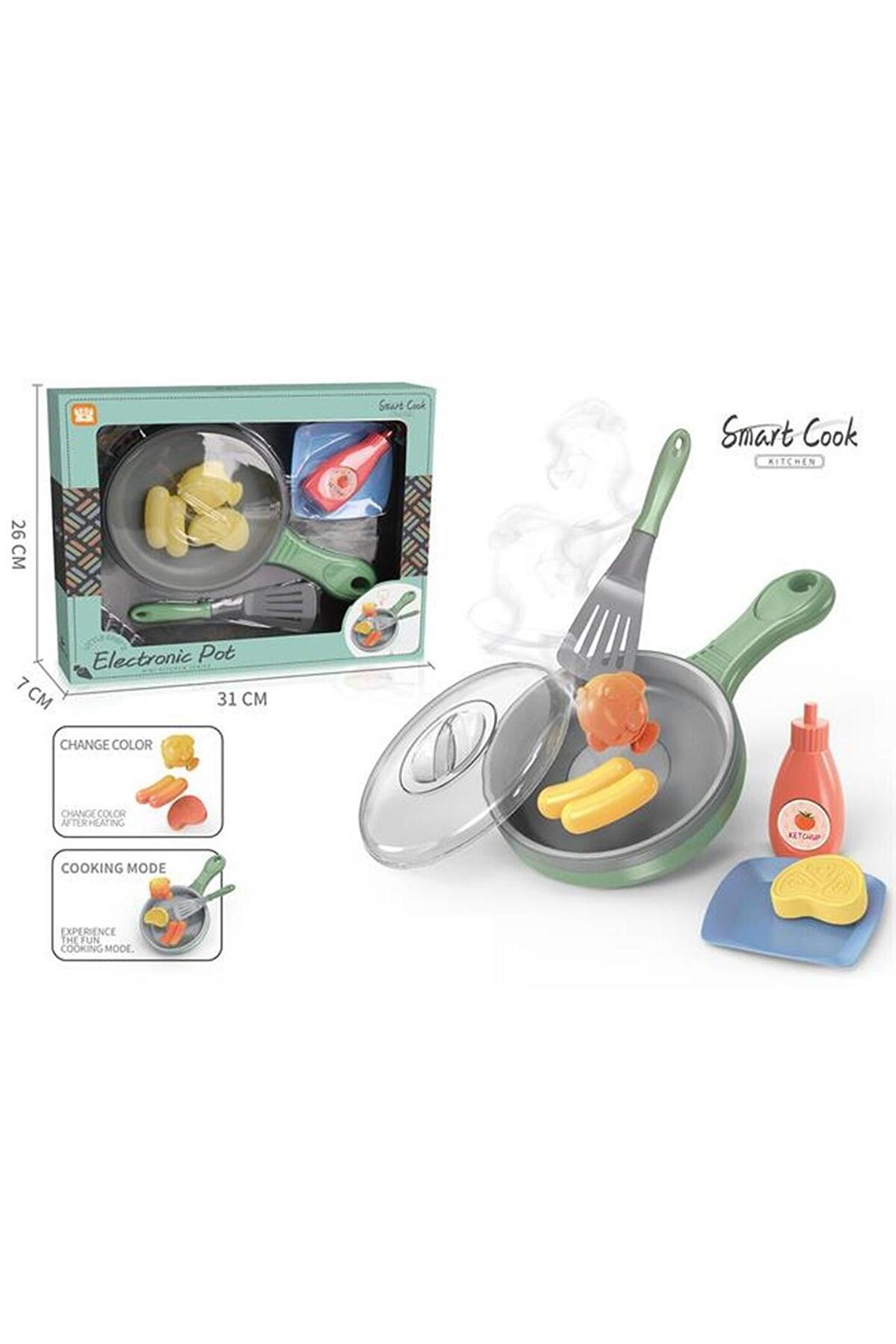 Kızartma tava setimiz, çocukların eğlencesi için tasarlanmış olup, renk değiştirme özelliği ile oyunlarını daha da keyifli hale getirir ; 6 yaş ve üzeri çocuklar için uygun olan bu set, mutfakta eğlenceli vakit geçirmelerini sağlayacak ;