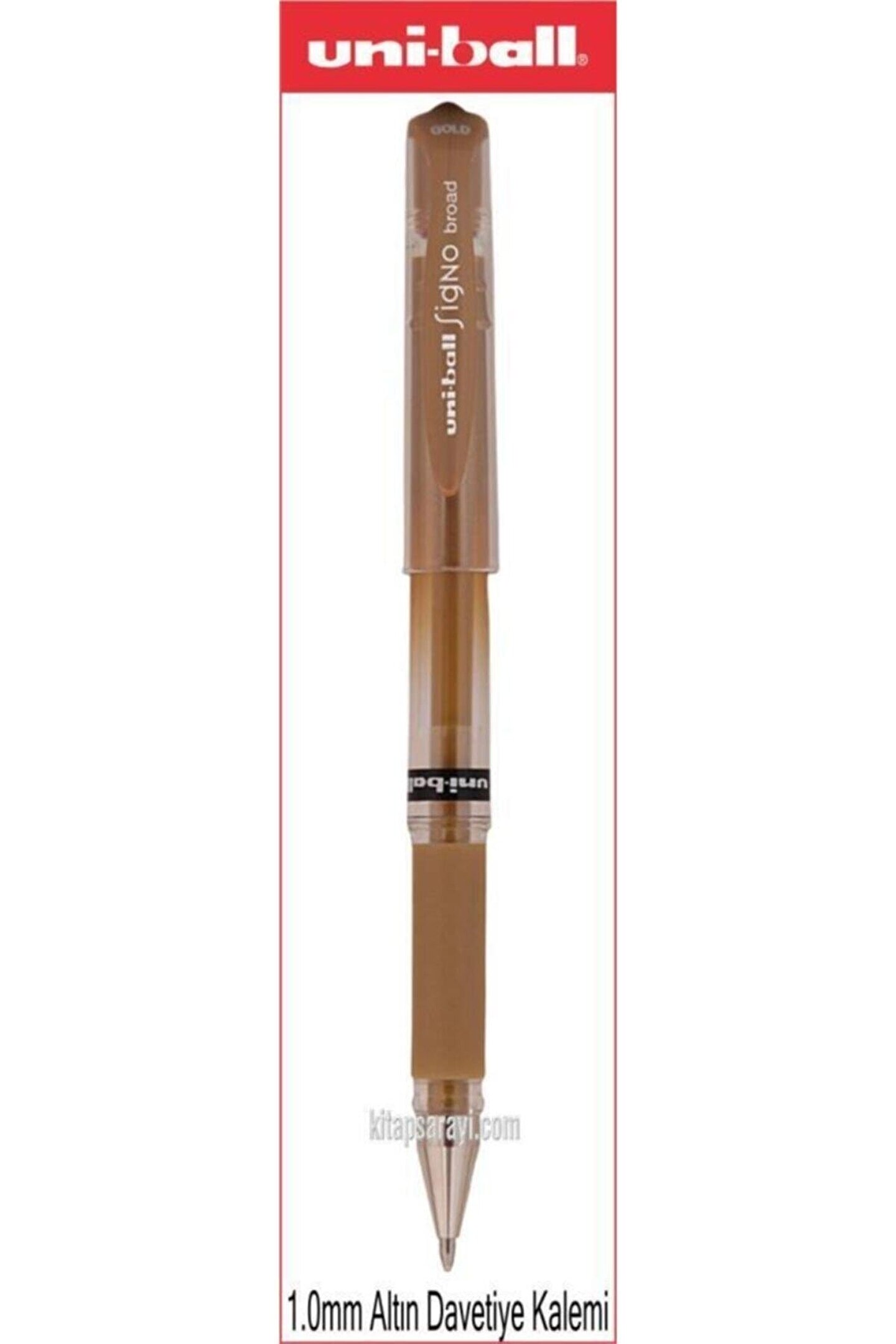 Uniball Signo Broad 1; 0 mm Altın Davetiye Kalemi UM; 153 Ürün Özellikleri 1; 0 mm uç kalınlığı ile tok ve yumuşak yazımlı imza kalemi 0; 6 mm çizgi kalınlığı 1; 0 mm bilye büyüklüğü Eli rahatsız etmeyen, kullanıcının yazım konforunu artıran yumuşak tutaç; Yazılarınızı, İmzalarınız ve değerli belgelerinizi tüm etkenlere karşı dayanıklı Uni Süper Mürekkep Arşiv Kalitesinde İmza Özelliği Canlı gövde rengi seçenekleri Çocukların yutma riskine karşı nefes borusunun tıkanmasını önleyen kapak sistemi;
