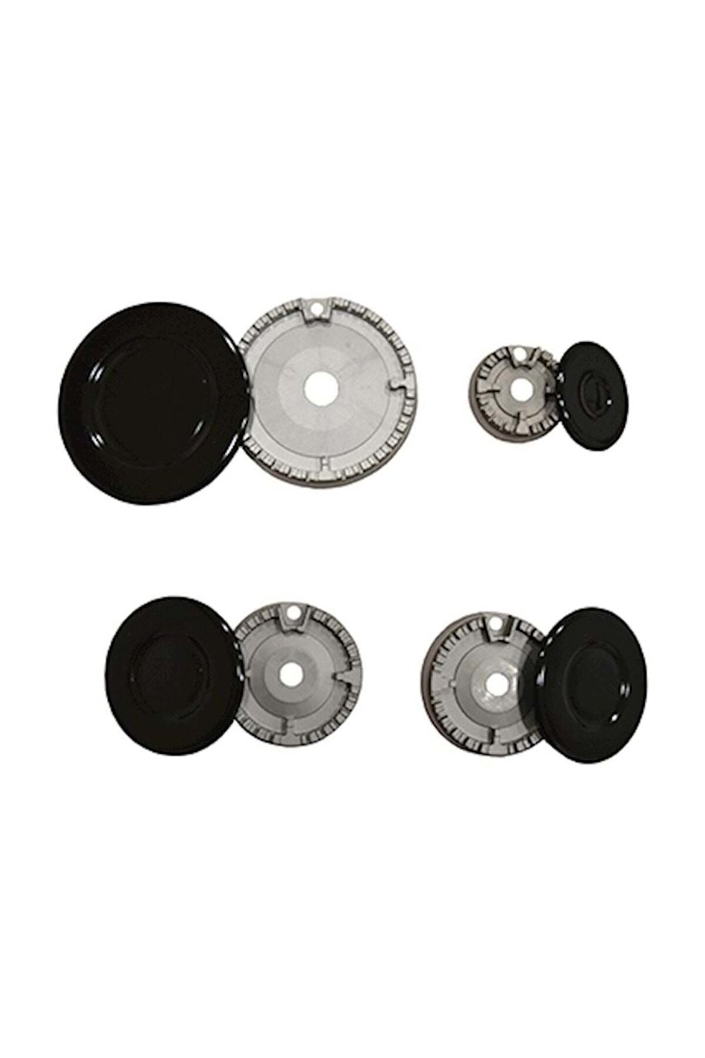 Ocak bek takımı, kapak altındaki beki ters çevirerek ocakla uyum sağlama esnekliği sunar.; Ocak üstü bek takımı çeşitli markalı ocaklarla uyumlu olarak tasarlanmıştır ve farklı ocak modellerinde kullanılabilir.; Set üstü ocak bek takımı, toplamda 4 adet ocak gözünden oluşur ve arızalı ocakları hızlıca tamir etmenizi sağlar.; Universal ocak bek takımı dahilindeki büyük gözün üst kapağı 100 mm ve alt kapağı 93 mm boyutundadır, böylece büyük tencerelerin ve tavaların kullanımı kolaydır.; Orta gözlerin üst kapağı 75 mm ve alt kapağı 69 mm ölçülerindedir, bu da orta boy tencereler için idealdir.; Küçük gözün üst kapağı 55 mm ve alt kapağı 49 mm boyutundadır, küçük tencerelerde veya sos tenceresinde kullanımı destekler.; Genişliği sayesinde tüm tencereler için alan açılmış olur.; Havuz bek sistemine sahip ocaklarla uyumlu olan bu ürün, ocakların altındaki çukur alüminyum bölüm ve enjektör ile gaz çıkışını sağlar.; Eğer ocağınızın altındaki beklerin altında çukur bir alüminyum bölüm ve enjektör varsa, ocağınız havuz bek sistemlidir ve bu ürün sizin için uygundur.; Set, ocak değişiklikleri veya yükseltmeleri gerektirmeden farklı ocak modelleriyle kullanılabilir.; Havuz bek sistemli ocaklarla uyumlu olması, gaz çıkışını düzenler ve güvenli bir kullanım sağlar.; Universal bek takımı, mutfakta yemek pişirme işlemlerini daha pratik ve etkili hale getirir.; Mutfak ekipmanlarını sorunsuz bir şekilde uyumlu ocaklarda kullanabilmenize yardımcı olur.;