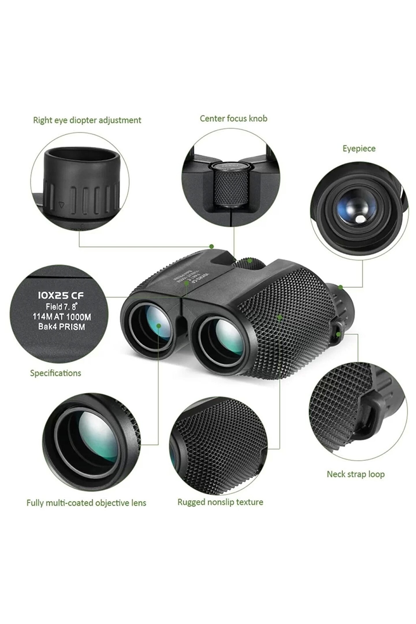 ureticiniz 10x25 Kompakt Dürbün Yüksek Güçlü Açık Spor Teleskop Cep Kapsamı Konser Seyahat Çocuklar İçin Hediye