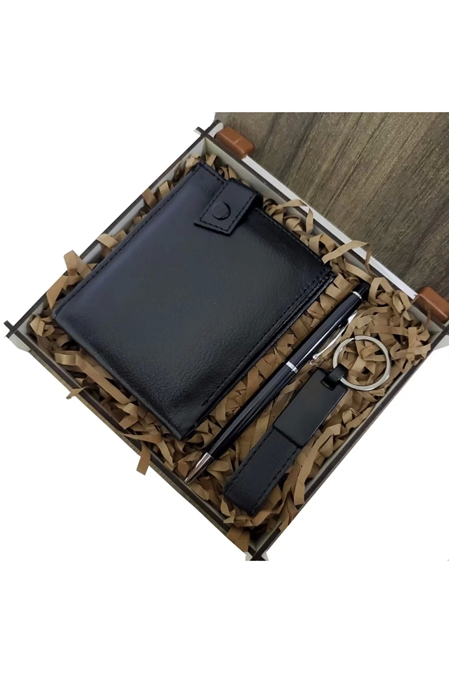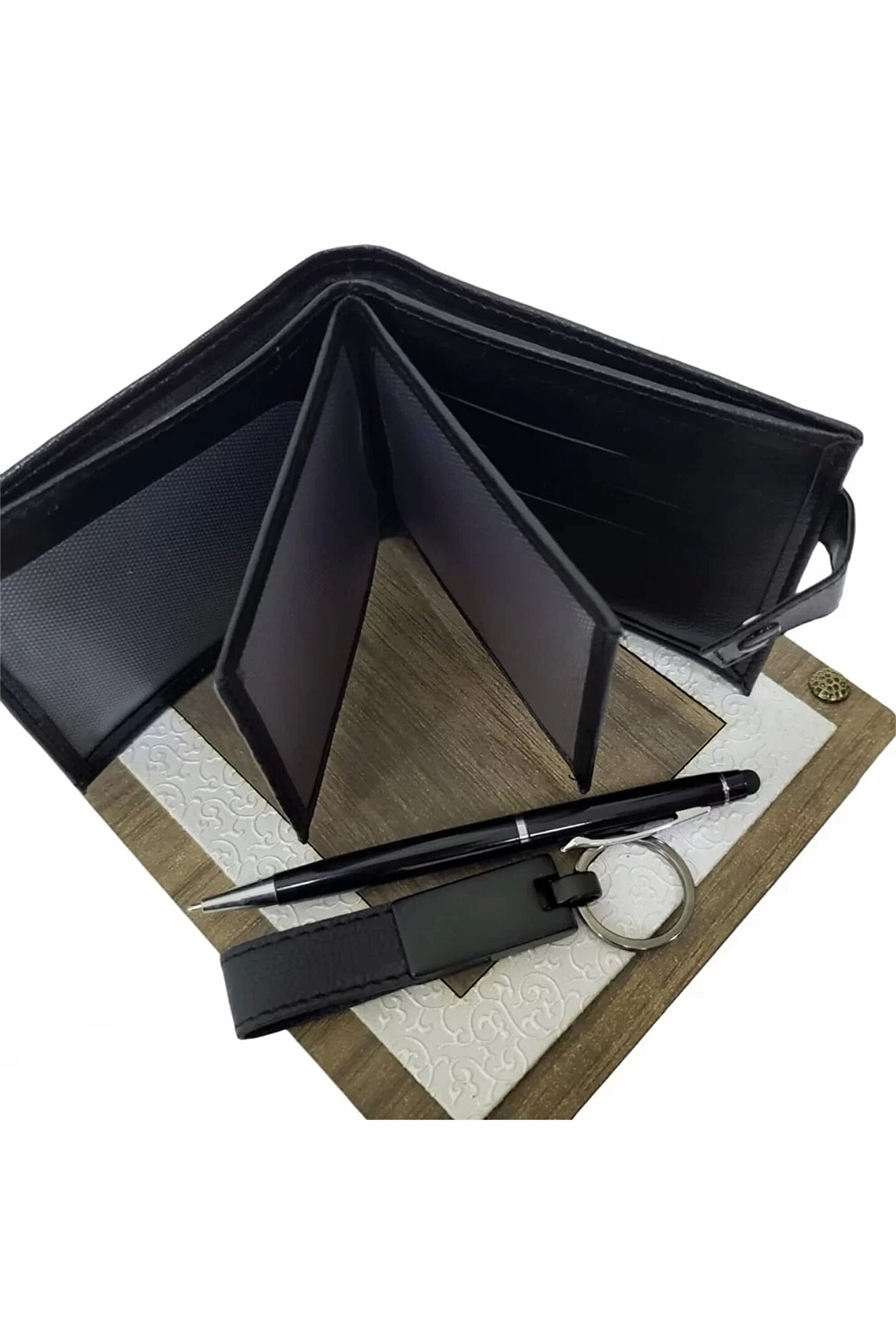 ureticiniz Ahşap Kutulu Erkeğe 3&039lü Kalem Cüzdan Anahtar Hediye Seti