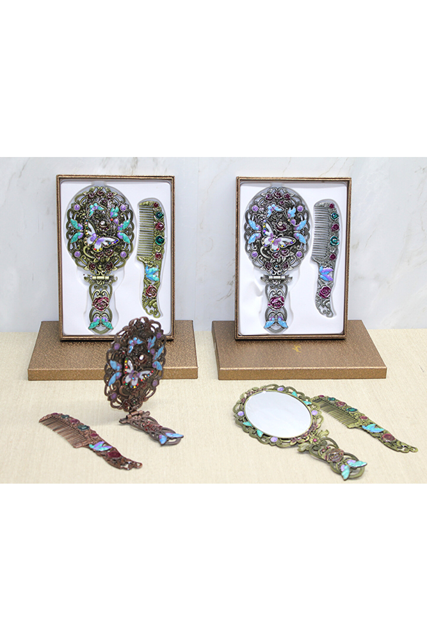 KELEBEK KATLANABİLİR AYNA VE TARAK SETİ BÜYÜK BOY Ürün Özellikleri Kelebek katlanabilir ayna ve tarak seti büyük boy, şık ve fonksiyonel tasarımıyla hem günlük kullanım hem de hediye alternatifi için öne çıkar.; 21x10 cm boyutunda olan bu set, estetik kelebek desenleriyle süslenmiş metal gövdeye sahiptir.; Katlanabilir yapısı sayesinde kolay taşınabilir ve çantalarda pratik şekilde saklanabilir.; Ayna net görüntü sunarken tarak saçların düzenlenmesi için kullanışlıdır.; Model seçimi yapılamaz, görseldeki modellerden karışık olarak gönderilmektedir.; Paket İçeriği 1 adet Kelebek Katlanabilir Ayna Ve Tarak Seti Büyük Boy