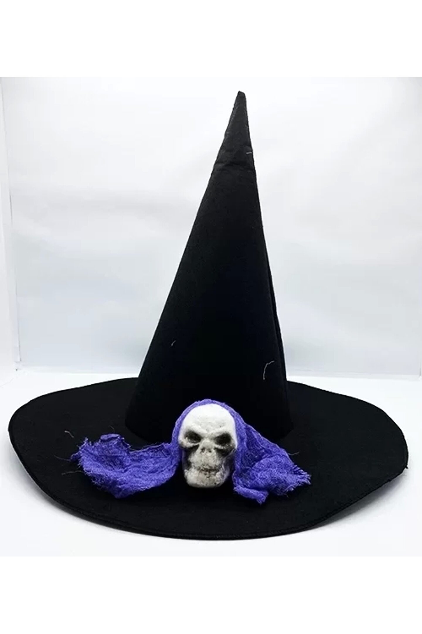 ureticiniz Siyah Renk Mavi Duvaklı Kuru Kafa Temalı Cadı Şapkası 35x38 Cm