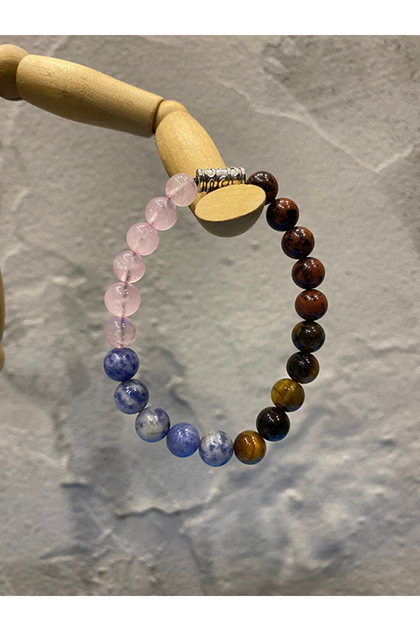 USE NATURA Balık Burcu Bilekliği - Pembe Kuvars, Sodalit, Kaplangözü Ve Akik Taşı