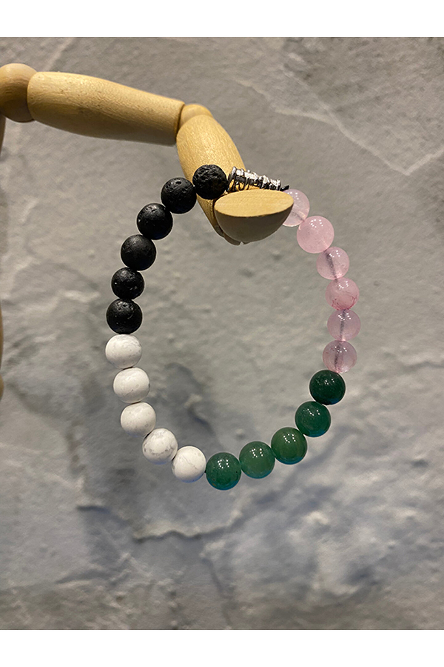 Boğa burcunun enerjisini ve doğal taşların şifalı gücünü bileğinizde taşıyın! Bu özel tasarım bileklik, boğa burcu kadınları için özenle seçilmiş pembe kuvars, yeşim, havlit ve lav taşlarından oluşmuştur. 8 mm küre kesim taşlardan oluşan bu bileklik, stilinize şıklık ve zarafet katarken, aynı zamanda doğal taşların faydalarından da yararlanmanızı sağlar. Pembe Kuvars Taşı : Boğa burcu kadını için sevgi ve şefkati artırır. Kalp çakrasını açar. Stresi ve gerginliği azaltır. ; Yeşim Taşı: Boğa burcu kadını için şans ve bereket getirir. Bolluk ve refahı artırır. Huzur ve sakinlik verir. ; Havlit Taşı: Boğa burcu kadını için sabrı ve hoşgörüyü artırır. Öfke ve stresi azaltır. İletişimi ve öz-farkındalığı geliştirir. ; Lav Taşı: Boğa burcu kadını için yaratıcılığı ve ilhamı artırır. Değişime ve dönüşüme yardımcı olur. Öfke ve stresi azaltır. ; Bu bileklik, boğa burcu kadınlarının sevgi, şans, huzur, bolluk ve bereket enerjilerini artırmaları için ideal bir seçimdir.