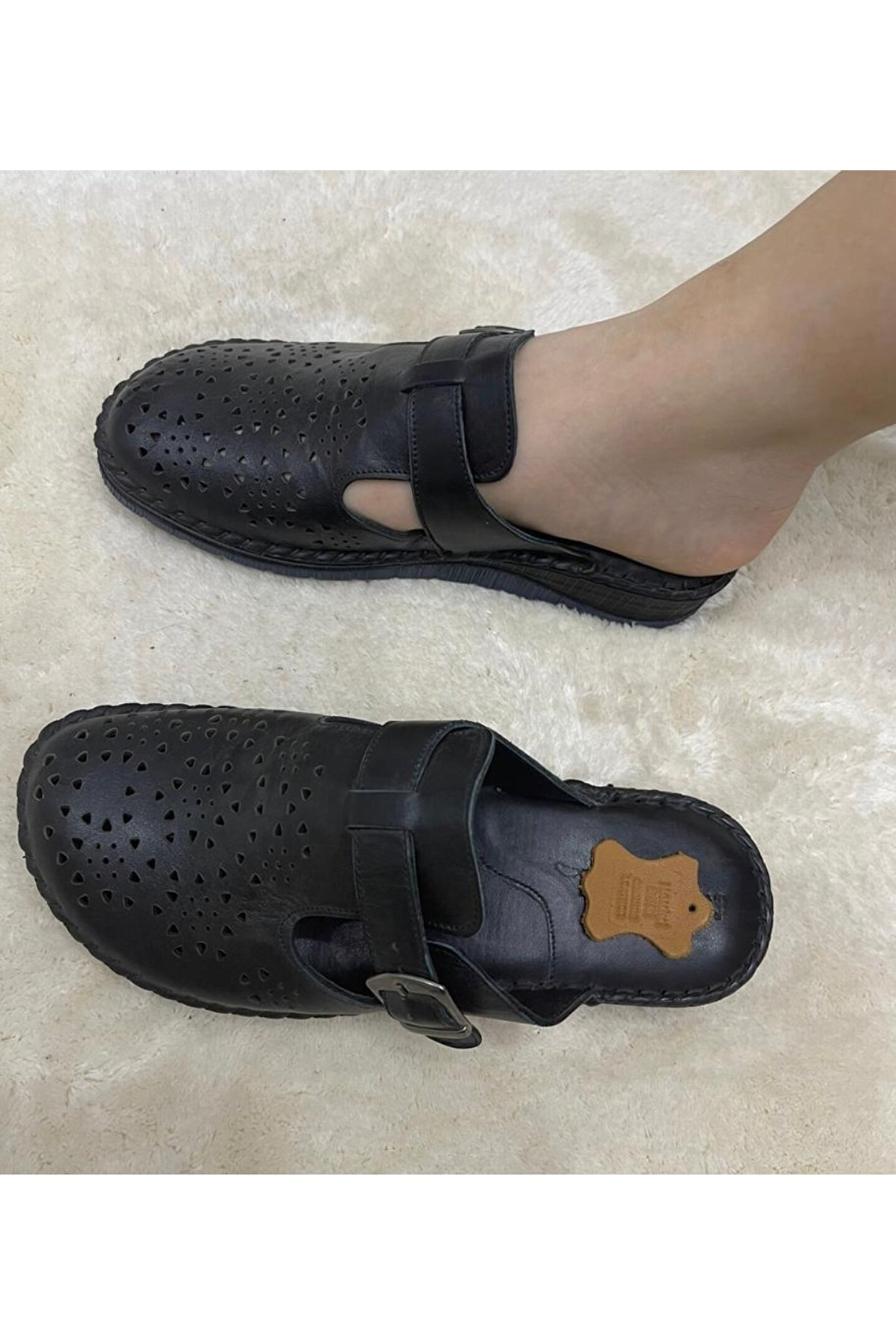 Rahat adımlar için ideal, kısa topuklu (1; 4 cm) tasarımıyla günlük kullanımınıza konfor katar; Ayak sağlığınızı düşünerek tasarlanmış, ortopedik taban desteği ile gün boyu rahatlık sunar; Hakiki deri astar materyali sayesinde ayaklarınızın nefes almasını sağlar ve uzun süreli kullanımlarda bile konforunuzdan ödün vermez; İç tabanında da hakiki deri kullanılarak ayaklarınızın yumuşak bir zeminde hissetmesini sağlar; Kaliteli malzeme seçimiyle öne çıkan bu terlik, saya kısmında da hakiki deriden üretilmiştir; dayanıklılık ve şıklığı bir arada sunar; Düz deseniyle sade ve zamansız bir görünüm sergiler; her türlü kıyafetle kolayca uyum sağlar; Günlük kullanım için ideal olan bu terlik, casual ortamlarda rahatlıkla tercih edilebilir;