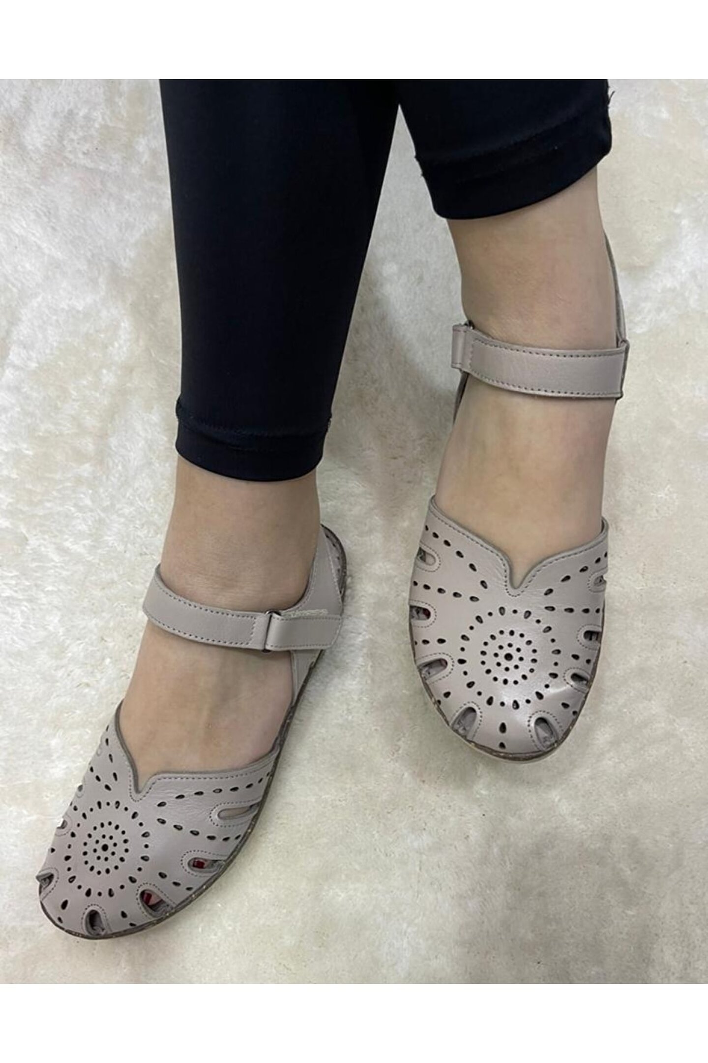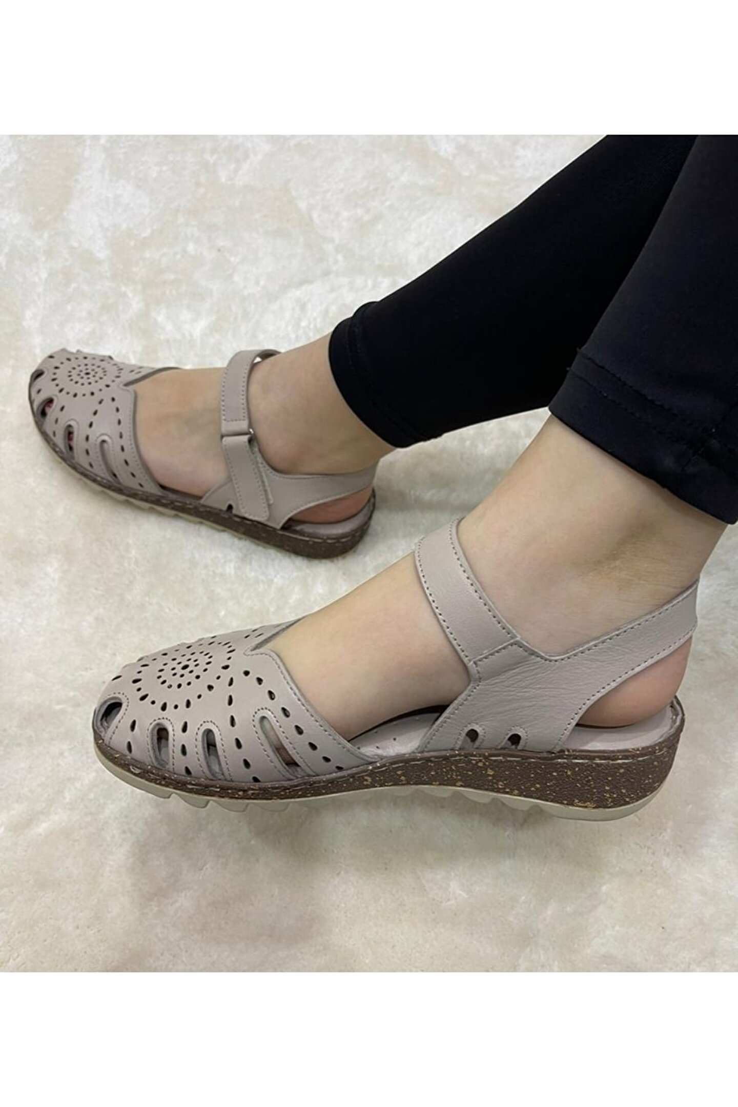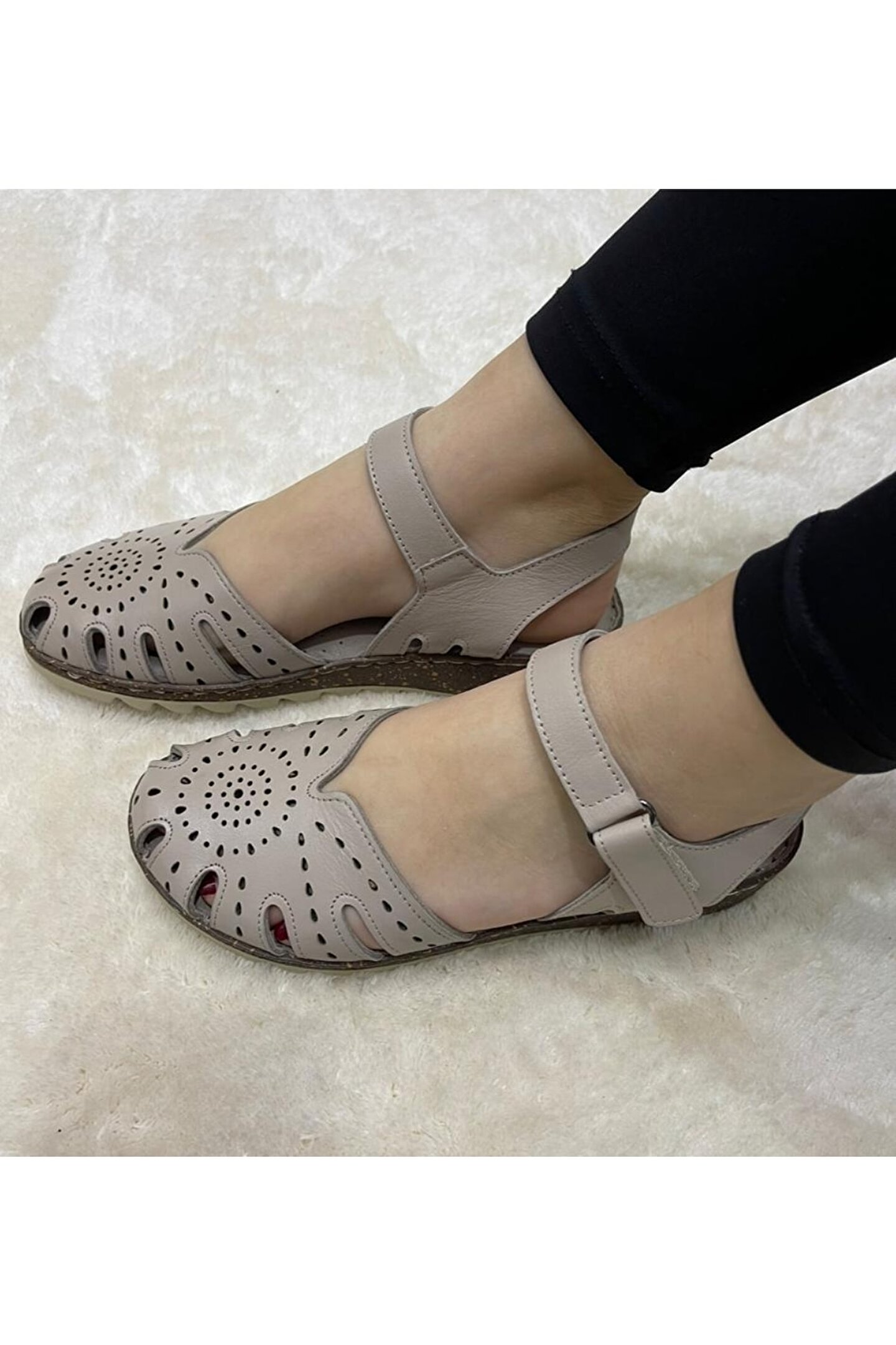 USLUFATİH Hakiki Deri Kadın Yazlık Delikli Burnu Kapalı Arkası Açık Içi Yumuşak Taban Günlük Sandalet Ayakkabı
