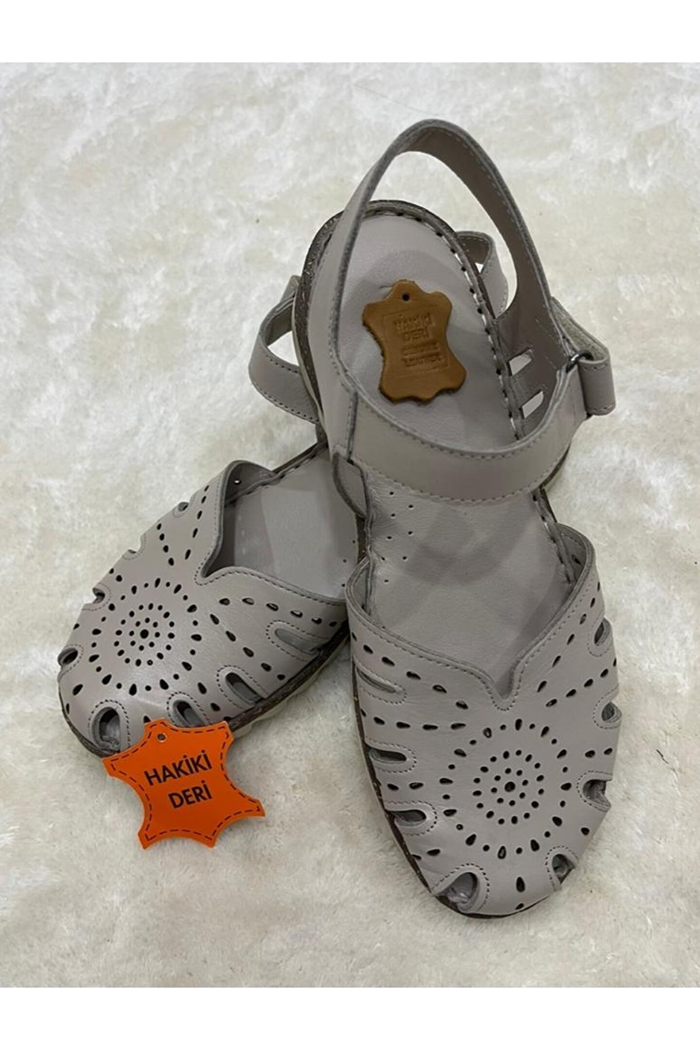 USLUFATİH Hakiki Deri Kadın Yazlık Delikli Burnu Kapalı Arkası Açık Içi Yumuşak Taban Günlük Sandalet Ayakkabı