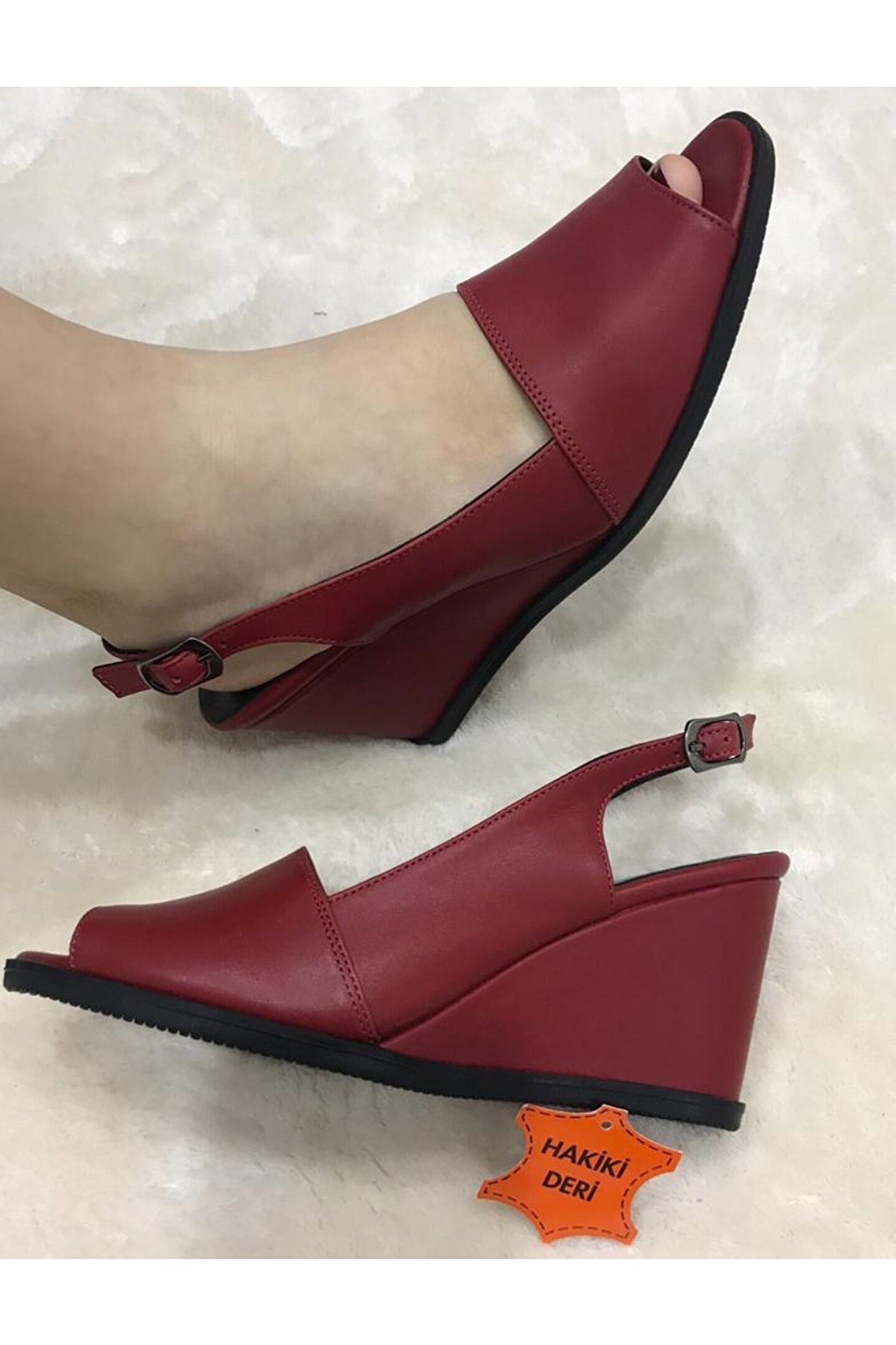 USLUFATİH Hakiki Deri Kadın Yazlık Dolgu Topuk Içi Yumuşak Taban Ayakkabı