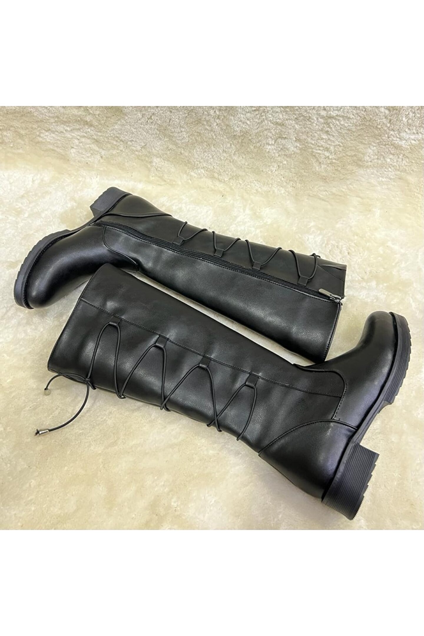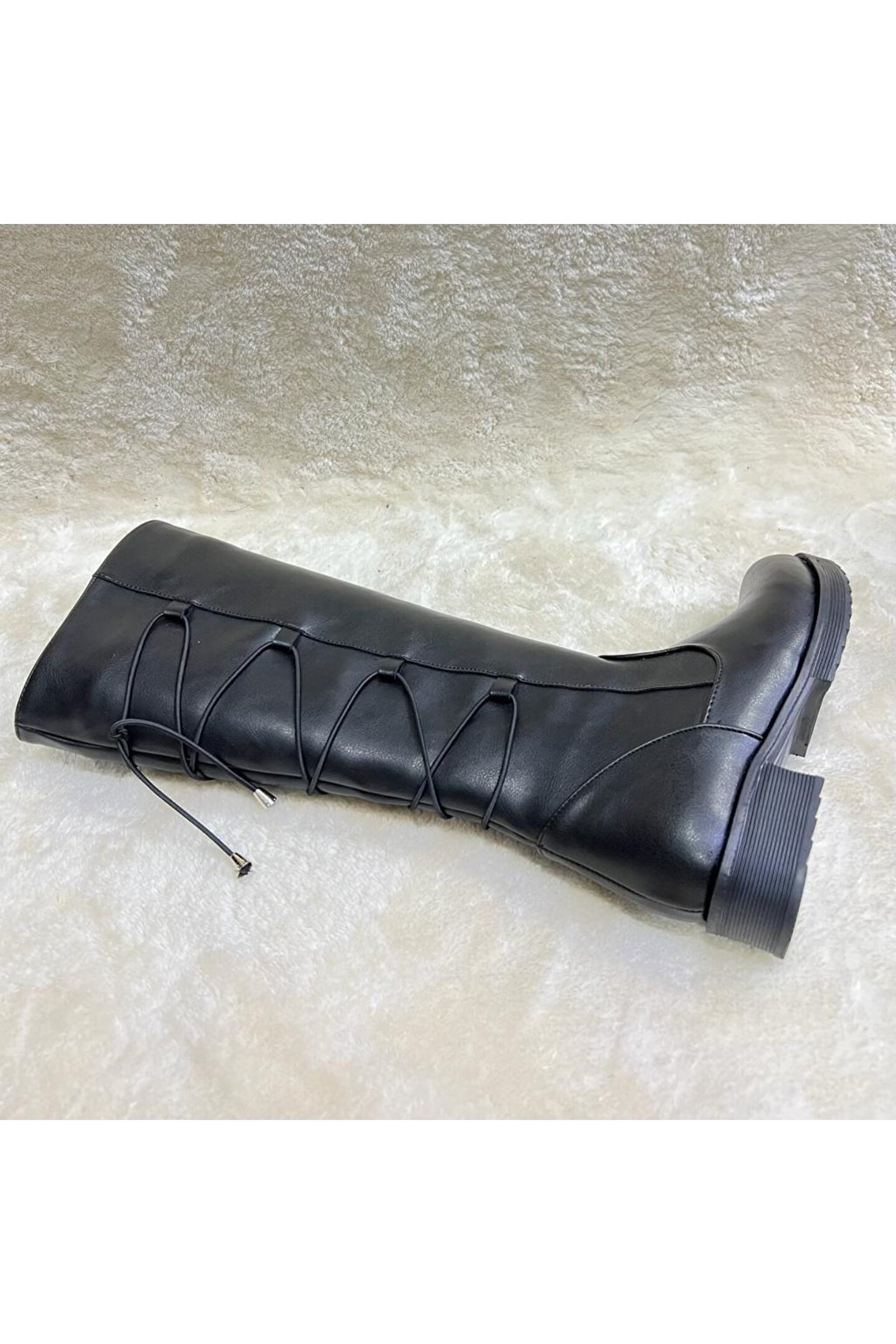 USLUFATİH Kadın Kışlık Arka Bağcık Modelli Düz Taban Diz Altı Çizme