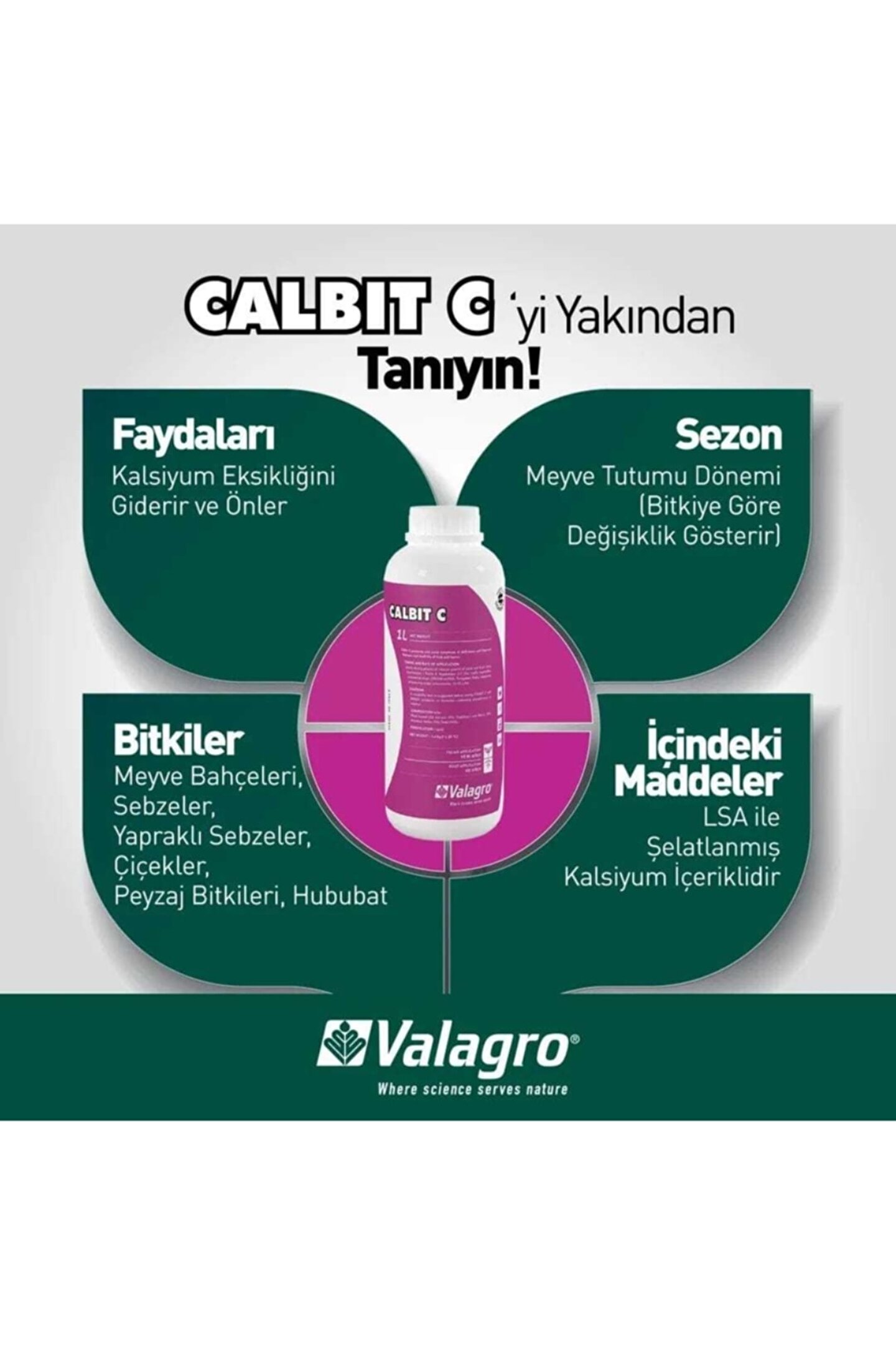 Calbit C LSA ile Kalsiyum karışımı. Meyvelerde ve çiçeklerde kalsiyumun hızlı biçimde taşınmasını destekler. ; Ayrıca çok hassas bitkilerde erken tedavi için güvenlidir. ; Yaygın olarak bulunan çoğu tarım ilacı ile karıştırılabilir. ; elmalarda çiçek bozuklarıç ; domateslerde çiçek ucu çürüklüğü ; biberlerde çürüme (lekelenme) ; kavun yapraklarında kurumaç ; marul, acı marul ve hindibalarda kuruma (uç yanığı) ; kiraz, şeftali, nektarin ve eriklerde çatlama. ; CALBIT C ile tedavi meyvenin daha dayanıklı olmasını ve dolayısıyla raf ömrünün uzamasını sağlamaktadır. CALBIT C, çözünmez hale gelme reaksiyonlarına karşı koruma sağlayan LSA kompleksi nedeniyle damlamadan kalsiyum uygulaması için idealdir (LSA-Kalsiyum kompleksi pH 3 ile 6.5 arasında stabildir). CALBIT C yapraklar üzerine uygulanırsa fitotoksik değildir ve bu tür fizyolojik bozukluklara karşı hassas olan meyvelerde yaprak kurumasına neden olmaz (örn. yumuşak çekirdekli meyveler. ;
