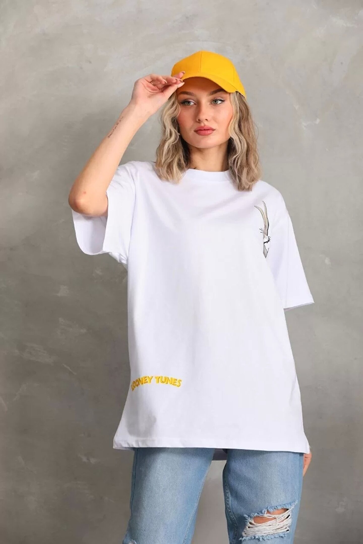 VALENCIOR Unisex Baskılı Oversize T-Shirt - Beyaz