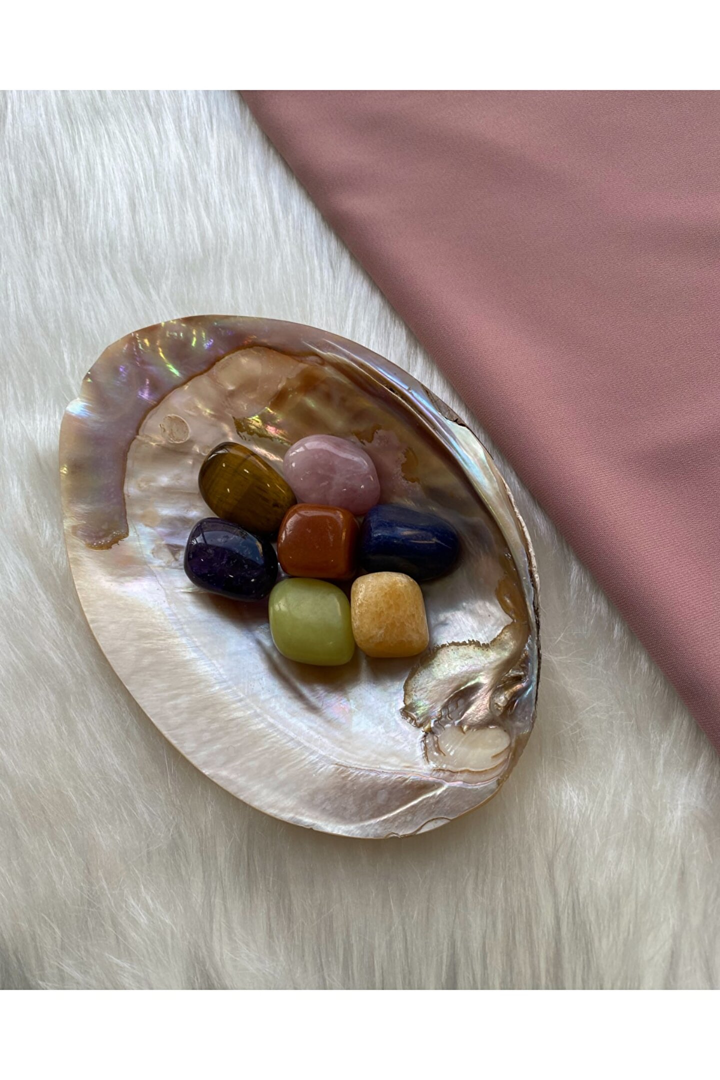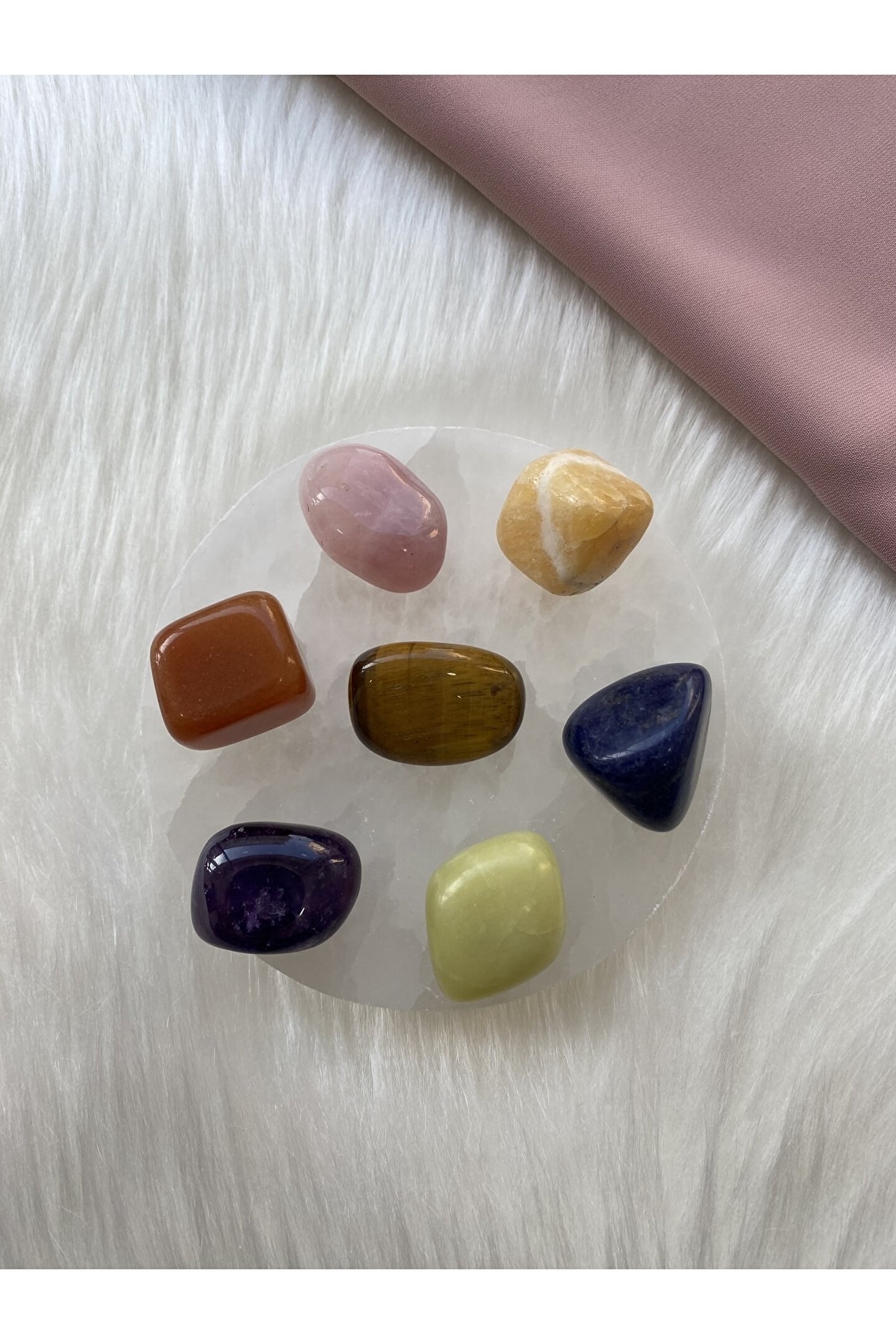Doğal taş çakra seti, evinizin veya ofisinizin dekorasyonuna doğanın özgün güzelliklerini getirir; Her bir parça, benzersiz ve doğal bir dokunuşla tasarlanmıştır, bu da mekanınıza sıcaklık ve huzur katar; Çakra taşları, enerji dengesi ve ruhsal dengeyi destekleyen özellikleriyle bilinir; bu sayede kişisel gelişim ve refahınıza katkıda bulunur; Doğal taşların şeffaflığı ve zarif görünümü, mekanınızda pozitif bir atmosfer yaratmanıza yardımcı olur; Bu set, hem dekoratif bir obje olarak işlev görür hem de meditasyon veya yoga gibi ruhsal uygulamalarınızda size eşlik eder;