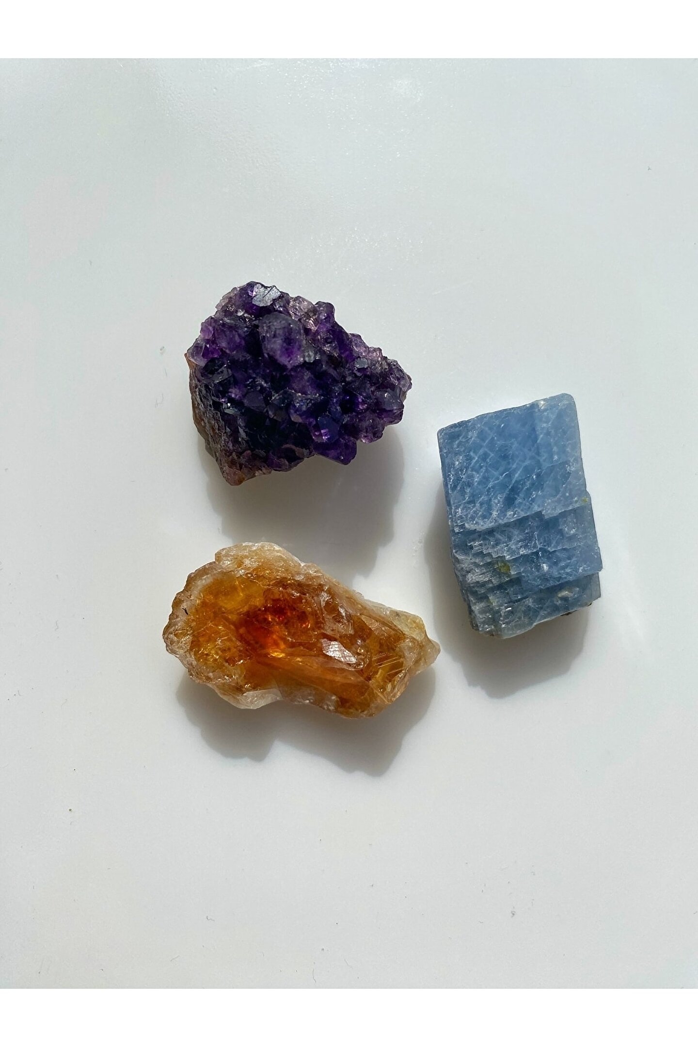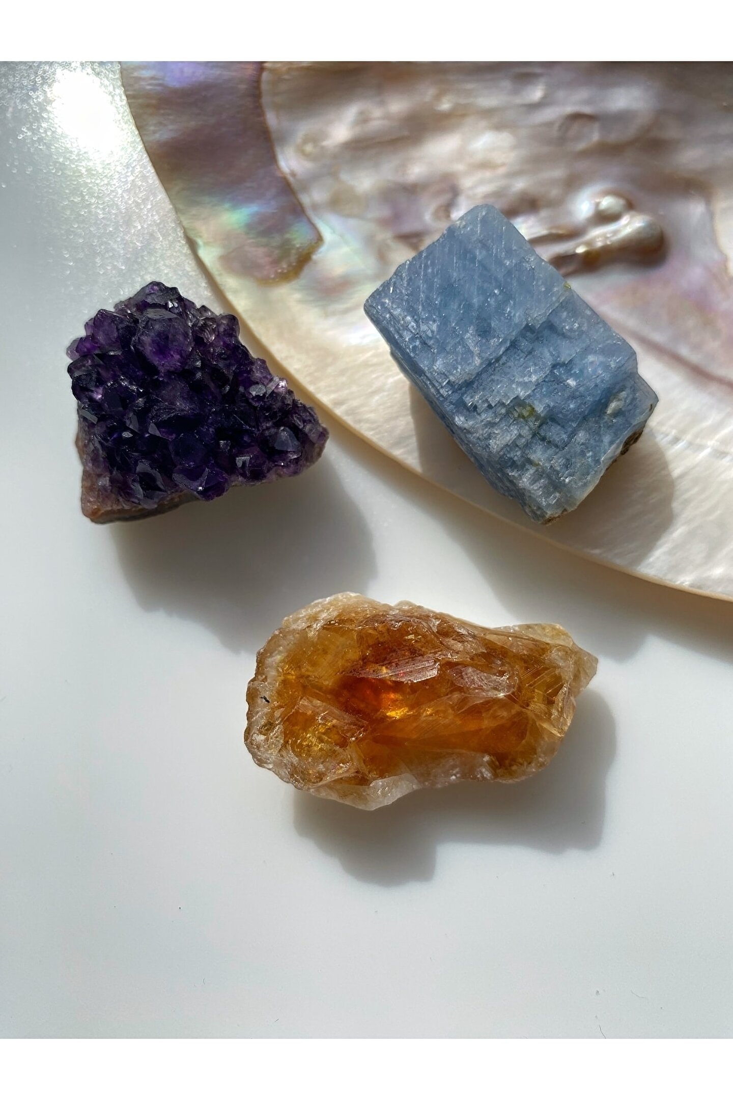 VALİOSO JOYA Mavi Kalsit Ametist Sitrin Doğal Taş Set 3’Lü