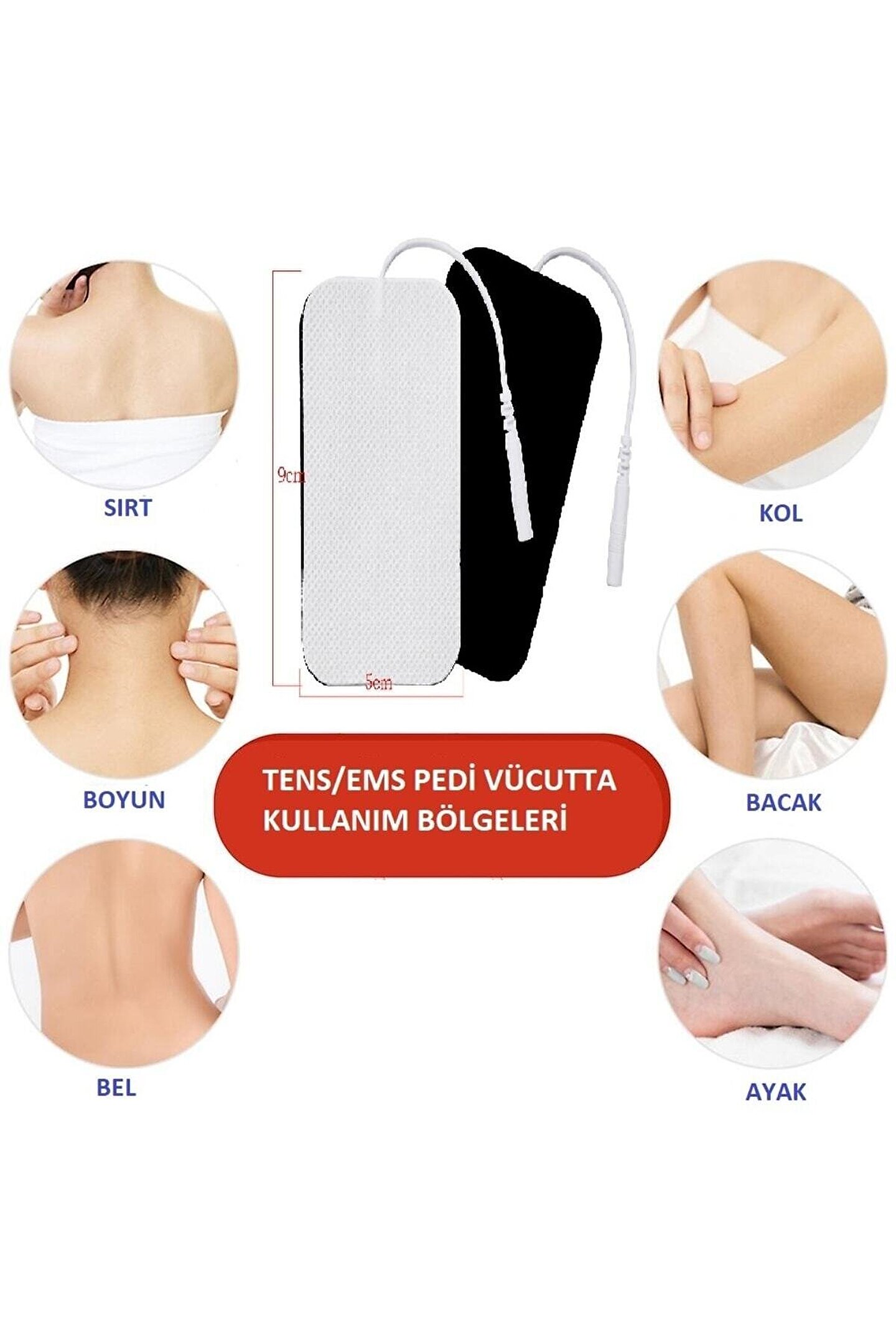 Tens pedi fizik tedavi cihazı ıçin yapışkanlı tens elektrodu 5 cm x 9 cm 4 adet soketli Tens pedi fizik tedavi cihazı ıçin yapışkanlı tens elektrodu 5 cm x 9 cm 4 adet soketli 1 Pakette 4 adet tens pedi bulunmaktadır.