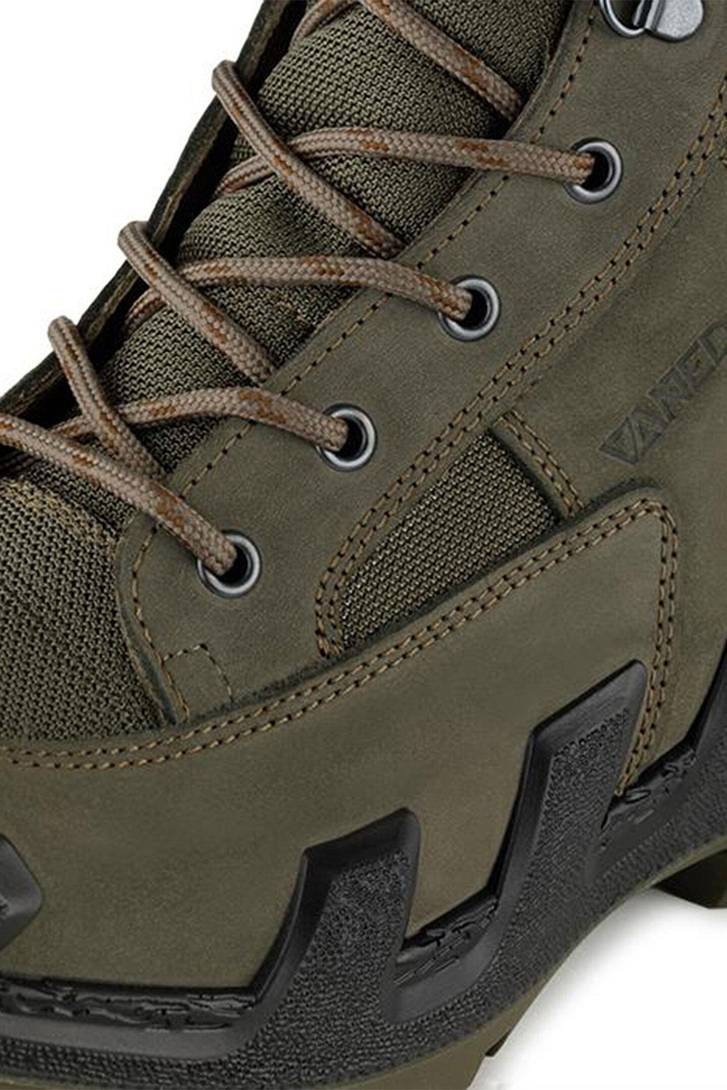 Vaneda V-Clutch 1348 On Duty Tactical Nubuk Bot Ürün Özellikleri: Dış Kısım: Su geçirmez, nefes alabilir nubuk deri ; CORDURA ® (Poliamid 6.6) hava geçirgen, dayanıklı örgü kumaş kullanılmıştır. İç Kısım: Hava geçirgen ve aşınmaya karşı dayanıklı anti ve bakteriyel polyester iç astar kullanılmıştır. Orta Taban: Özel yoğunluklu orta taban sayesinde hafiflik ve yüksek yastıklama konforu sağlar. PU orta tabanı, yüksek yan duvarlı tasarımı sayesinde ağırlığı eşit şekilde yayar. Bu sayede uzun süreli yürüyüş ve tırmanmada ayağı daha iyi muhafaza etmektedir. Taban tasarımı dışarıdan gelebilecek darbelere karşı etkin ön burun ve topuk koruması sağlar. Islak, kuru, sert veya gevşek yüzeylerde dayanıklılık ve güven sağlar Alt Taban: Kauçuk NUBES I-RUBBER ® taban sayesinde bulunduğu zeminde en üstün kavrama ve tutunmayı sağlar. Özel deseni arazi şartlarında maksimum performansı sağlar. Mostra: POLIYOU® açık hücreli malzeme yapısı sayesinde hava srkülasyonunu sağlamaktadır. Anatomik olarak desteklenmiş etkin konfor ve darbe emilimi mevcuttur. OrthoLite diecut sockliner: Ayakkabının iç şeklini alan bu OrthoLite iç taban üstün yastıklama, nefes alabilirlik ve dayanıklılık sağlayarak ayakkabının konforunu ve performansını yükseltir. Bağcık: Aşınma ve kopmaya dayanıklı 100% polyester su itici bağcıktır. Kauçuk alt tabanı kayalık ve zorlu arazi koşullarında mükemmel kavramayı sağlar. Özel dişli deseni sayesinde kaygan ve yumuşak zeminlerde en yüksek kaydırmazlığı sağlar. 595 gr'dır.(41 no. baz alınmıştır.) ,Topuk Yüksekliği: 5 Cm'dir. Enjeksiyon taban teknolojisi sayesinde üstün şok emici ve dayanıklılık sağlar. Nefes alabilir ve değiştirilebilir mostra. Ön ve arka tabanın tasarımı sayesinde dışarıdan gelebilecek darbelere karşı koruma sağlar.