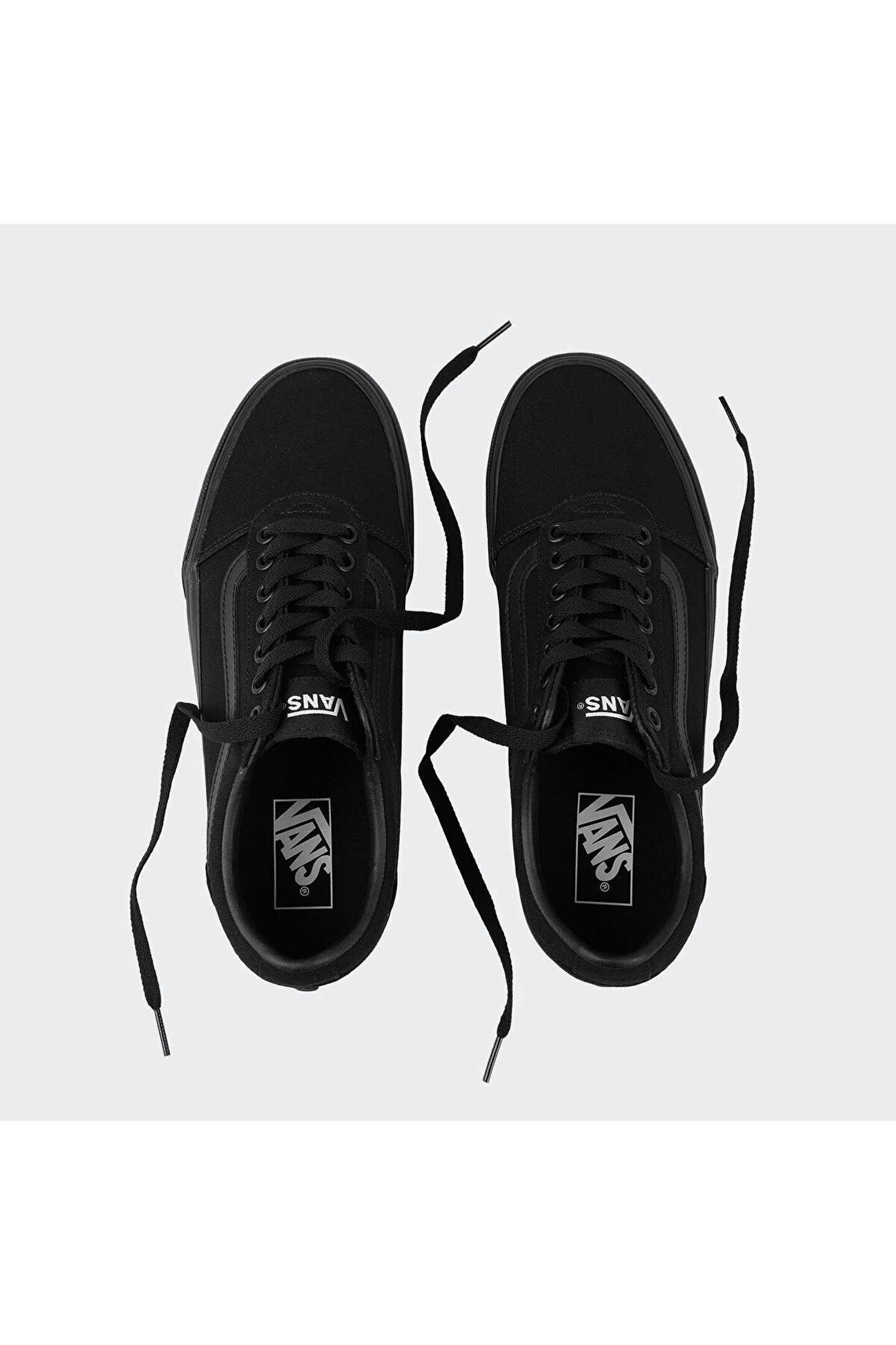 Klasik Vans ayakkabı modelinde üretilen Ward erkek siyah günlük ayakkabı güçlü tasarım özellikleriyle ilgi çekicidir.; Nostaljik görünümün modern hatlarla desteklenmesi özgün görünmeyi sevenler tarafından tercih edilmesini sağlar.; Sürekli kullanım ile eskime yüzdeliğini az yaşayabileceğiniz üst kalitede üretimi gerçekleşmiştir.; Bileksiz ve bağcıklı yapısı klasik görünüm eserlerinden birisidir.; Günlük kullanım içerisinde her yerde giyilebilecek bir ayakkabı olma özelliği duruşundaki minimal çizgilerinden kaynaklanmaktadır.; Kaliteli Özgün Tasarım Unsurları Ward Erkek Ayakabıda Klasik Vans kaykay ayakkabısı olarak nitelendirilmesi yapılabilecek olan ürün ikonik sidestripe özelliğini göstermektedir.; Vans markasının vazgeçilmez ve zamansız tasarım modeline sahip olan Old Skool modeli bu ürün üzerinde görebilmek mümkündür.; Ward erkek günlük ayakkabı özgün tasarımı kaliteli özelliklere birleştirilmiştir.; Vans Yılların Tecrübesiyle Sağlam Yapı Gösterir Erkek siyah günlük ayakkabı sağlam kanvas üst parçası olup sürekli giyime dayanacak şekilde güçlendirilmiştir.; Ayakkabı burnu ise çevre şartlarına karşı dayanıklı özellik gösterir.; Destek ve esneklik için dolgulu yaka bileğinizin rahat etmesini sağlar.; Vans'in imzası olan kauçuk waffle tabanı üzerinde yer alır.; Bağcıklı model olarak karşınıza çıkan ayakkabı yüzde 91 oranında kanvas malzemeden üretilmiştir.; Diğer kalan yüzde 9 ise sentetik malzeme içeriği bulunur.; Ayakkabının üretiminde kullanılan materyaller herhangi bir hayvansal yan ürün içermez.; Meta Açıklaması: Ward erkek siyah günlük ayakkabı özgün tasarımlarıyla öne çıkar.; Nostaljik Vans markasının çizgisinde üretilen ayakkabı sağlam yapı gösterecek kalitededir.; • Hafif Nylon ve Süet Üst Yüzey: Nefes alabilir ve dayanıklı malzemelerden üretilen bu ayakkabı, uzun süreli kullanımda bile rahatlık sağlar.; • EVA Yastıklama: Yumuşak EVA orta taban, ayaklarınıza ekstra destek vererek her adımda konforu artırır.; • Dayanıklı Kauçuk Dış Taban: Zemin tutuşu ve dayanıklılığı artıran kauçuk taban, her yüzeyde güvenli bir kullanım sunar.; • Retro ve Şık Tasarım: Zamansız renk seçenekleri ve klasik logosu ile günlük kombinlerinizde tarzınızı ön plana çıkarın.; • Rahat ve Ergonomik Yapı: Ayak anatomisine uygun tasarımıyla her adımda rahat bir his sağlar.