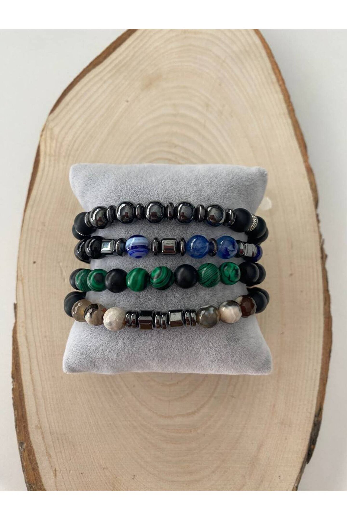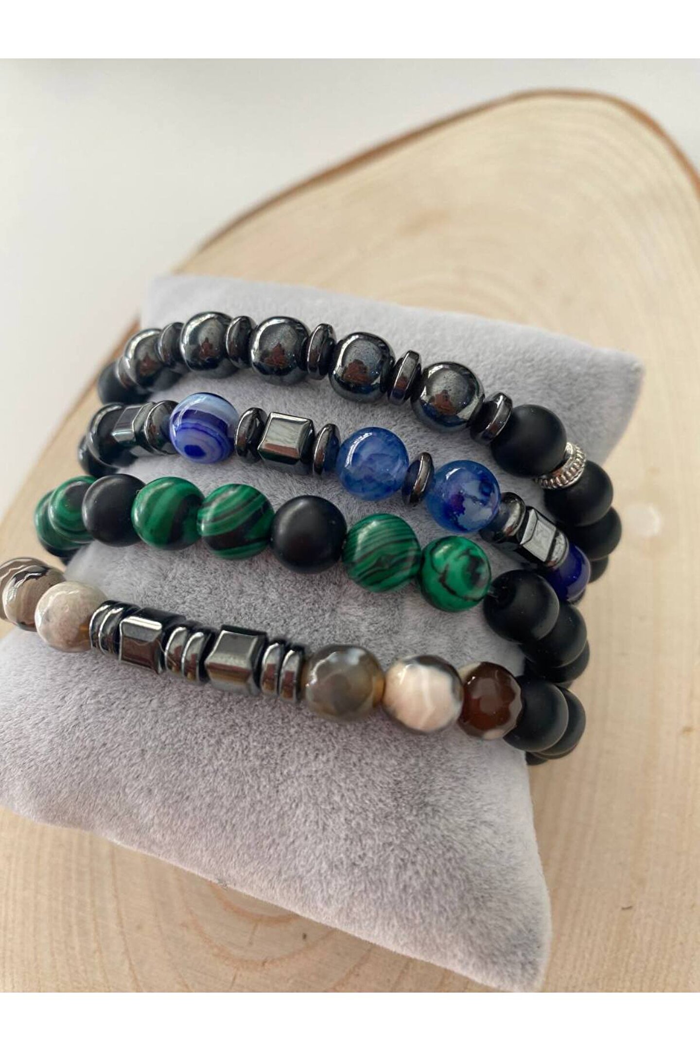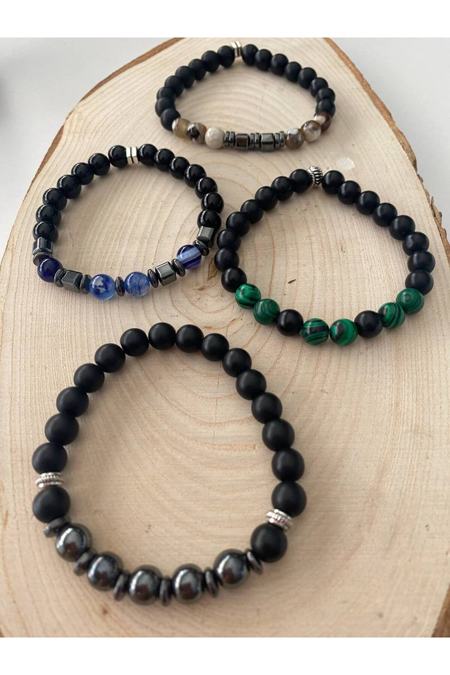 VAYE TİCARET Oniks-Akik-Malahit-Hematit Taşından 4 lü Doğal Taş Bileklik