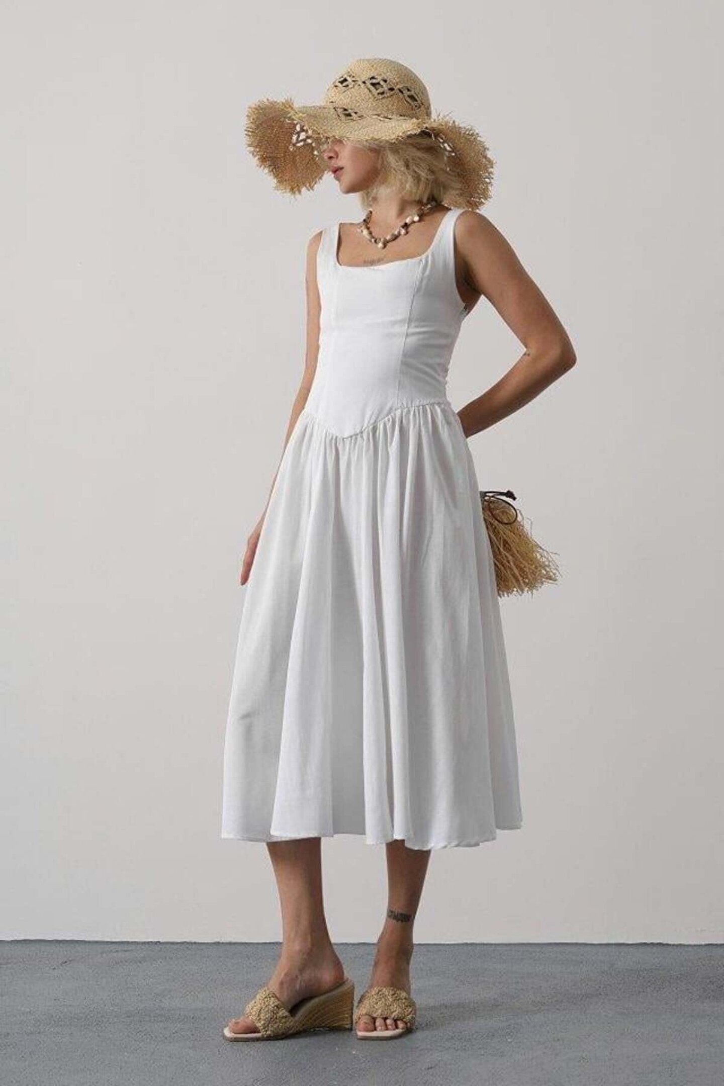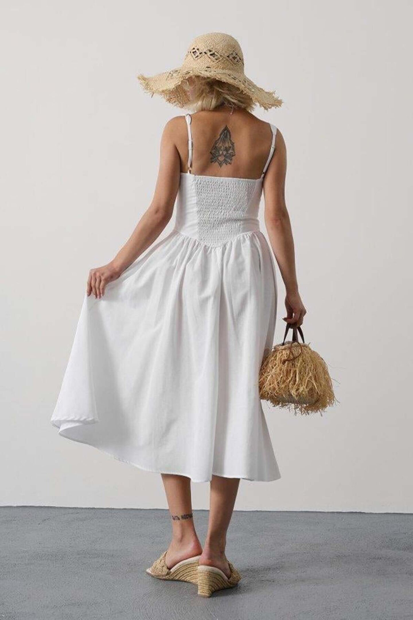 velmorafashion Askılı Uzun Elbise - Beyaz