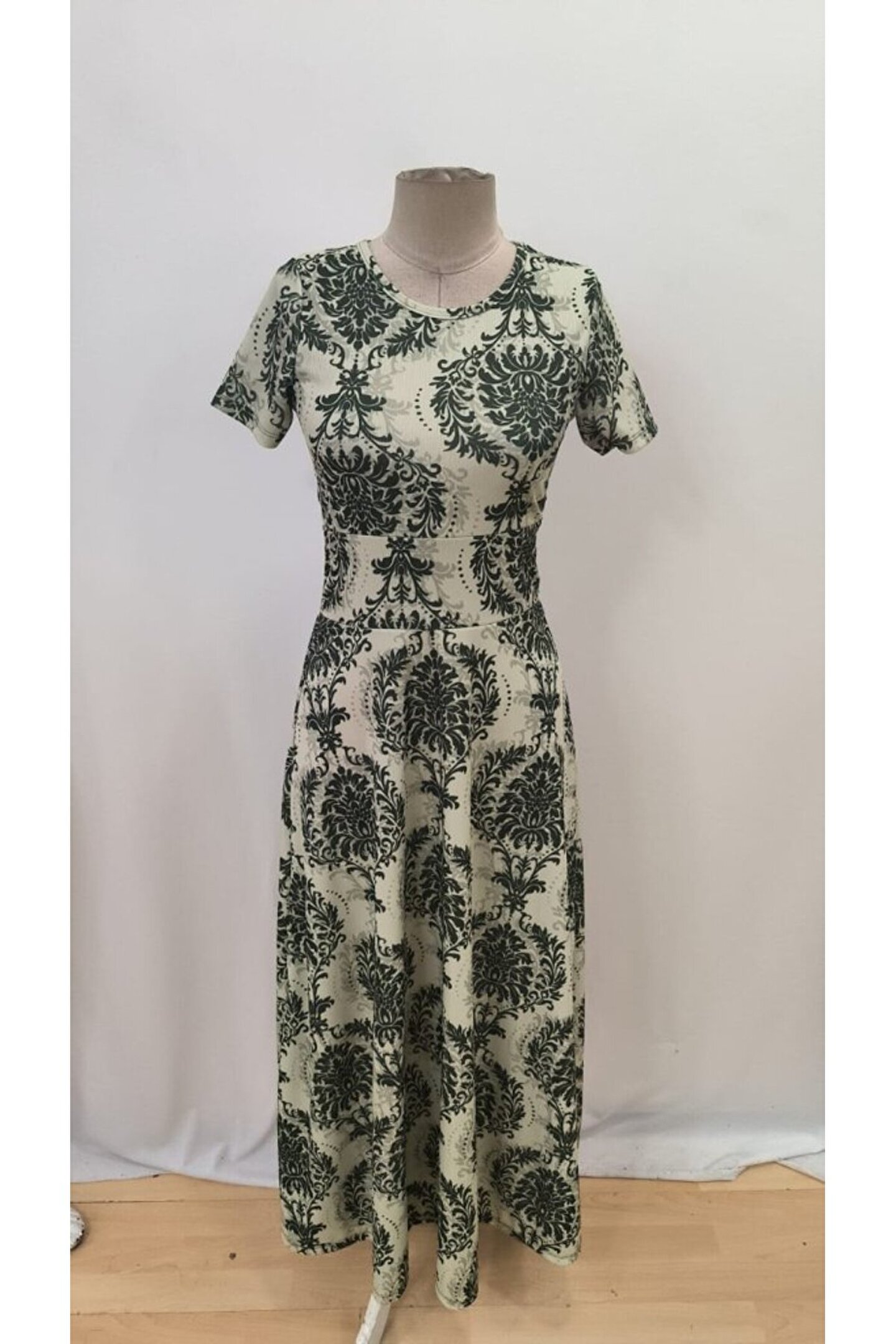 velmorafashion Edolika Kadın Kısa Kollu Bisiklet Yaka Puantiyeli Maksi örme Krep Elbise