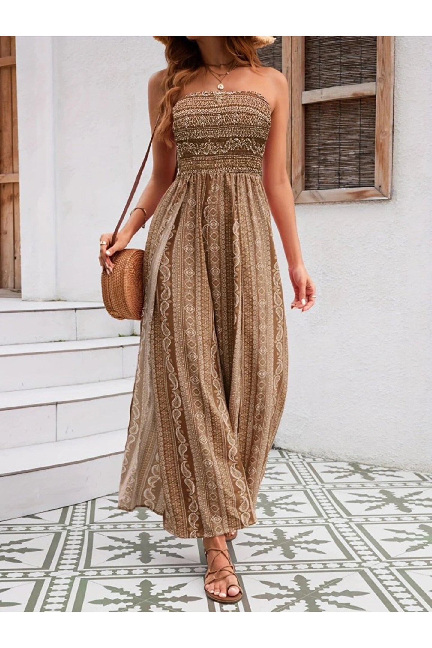 velmorafashion Kadın Yakası Gipe Detaylı önden Yırtmaç Detaylı Desenli Süprem Pantolun Etek Tulum