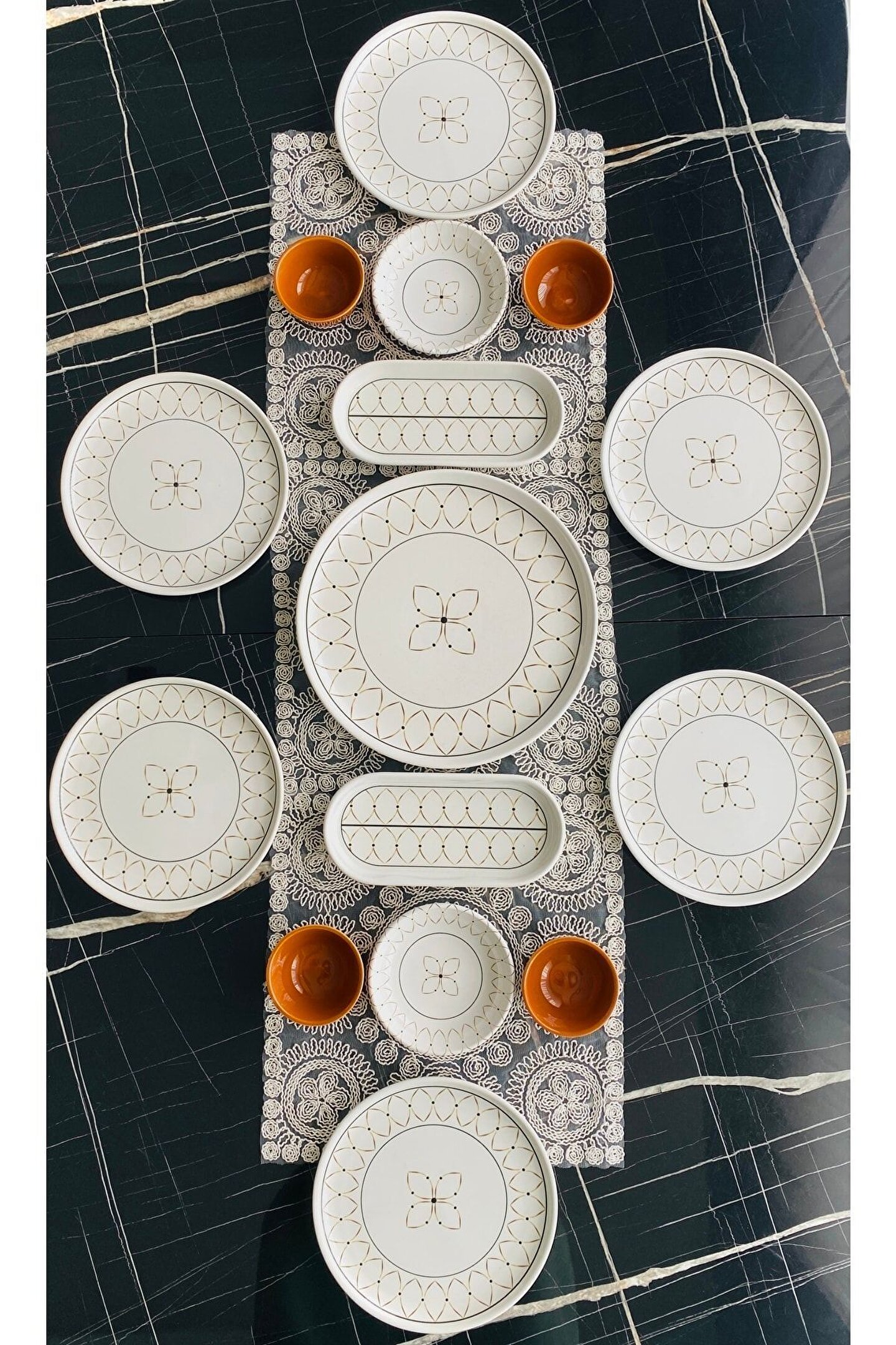 14 Parça 6 Kişilik Mermer Kahvaltı Takımı