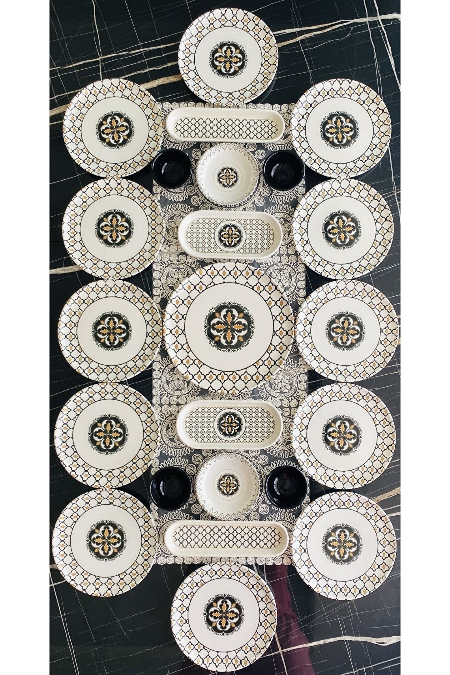 14 Parça 6 Kişilik Mermer Kahvaltı Takımı