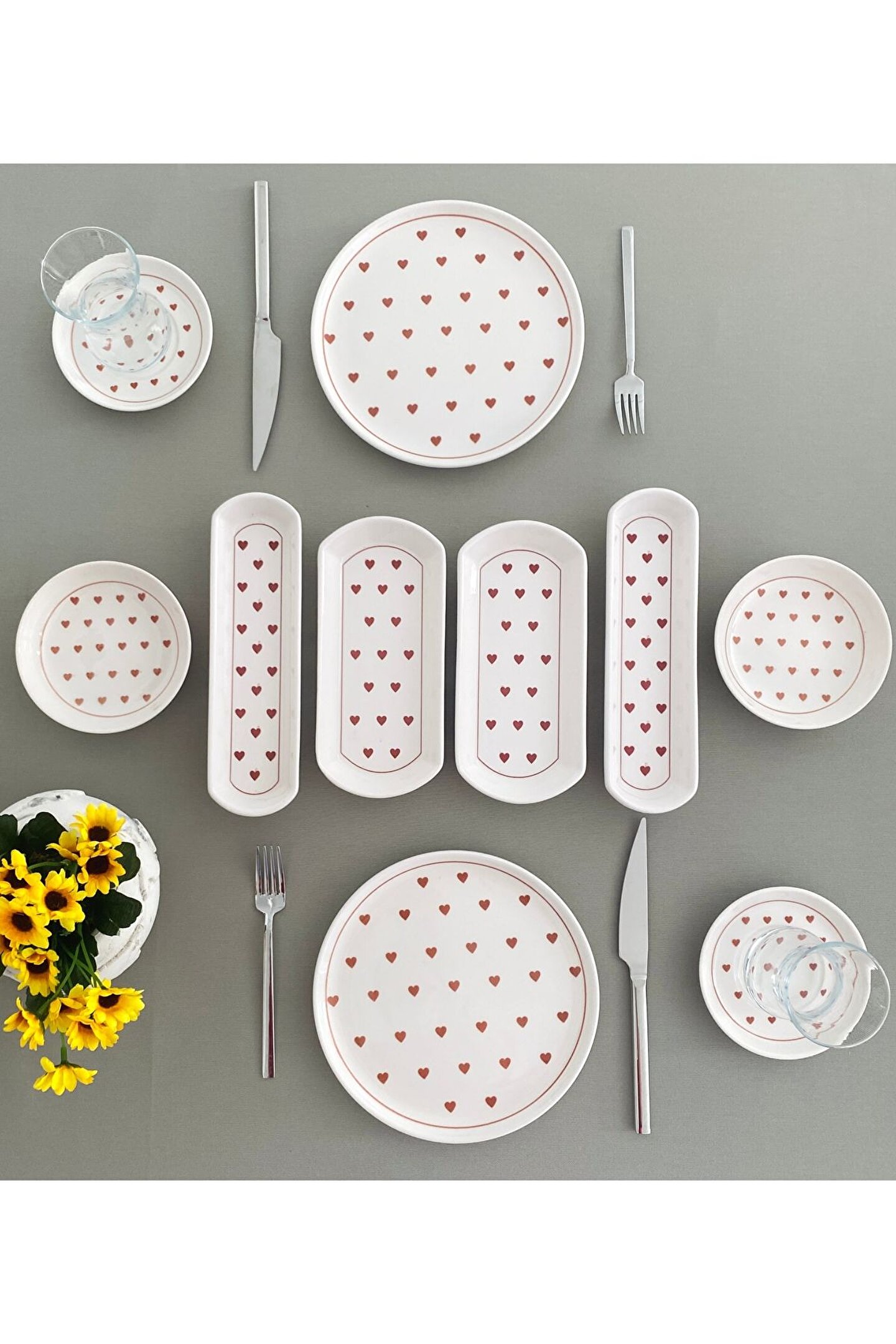 Love 2 kişilik 10 Parça Kırmızı kalp model Kahvaltı Takımı