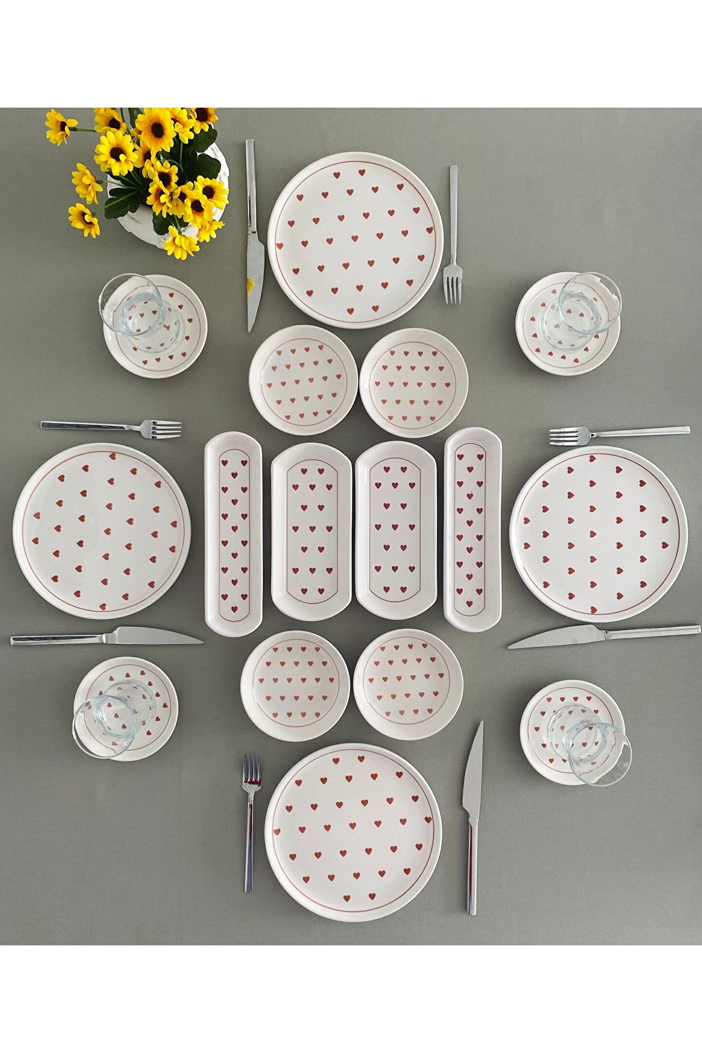 Love 4 Kişilik 16 Parça Kırmızı Kalp Model kahvaltı Takımı