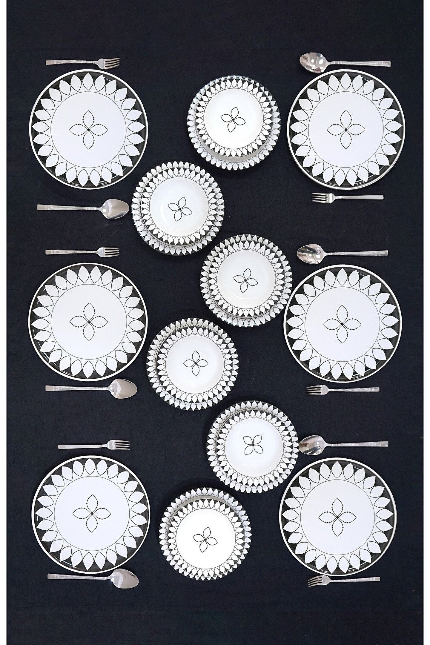 Lioni Porselen 24 Parça 6 Kişilik Yemek Takımı Silver