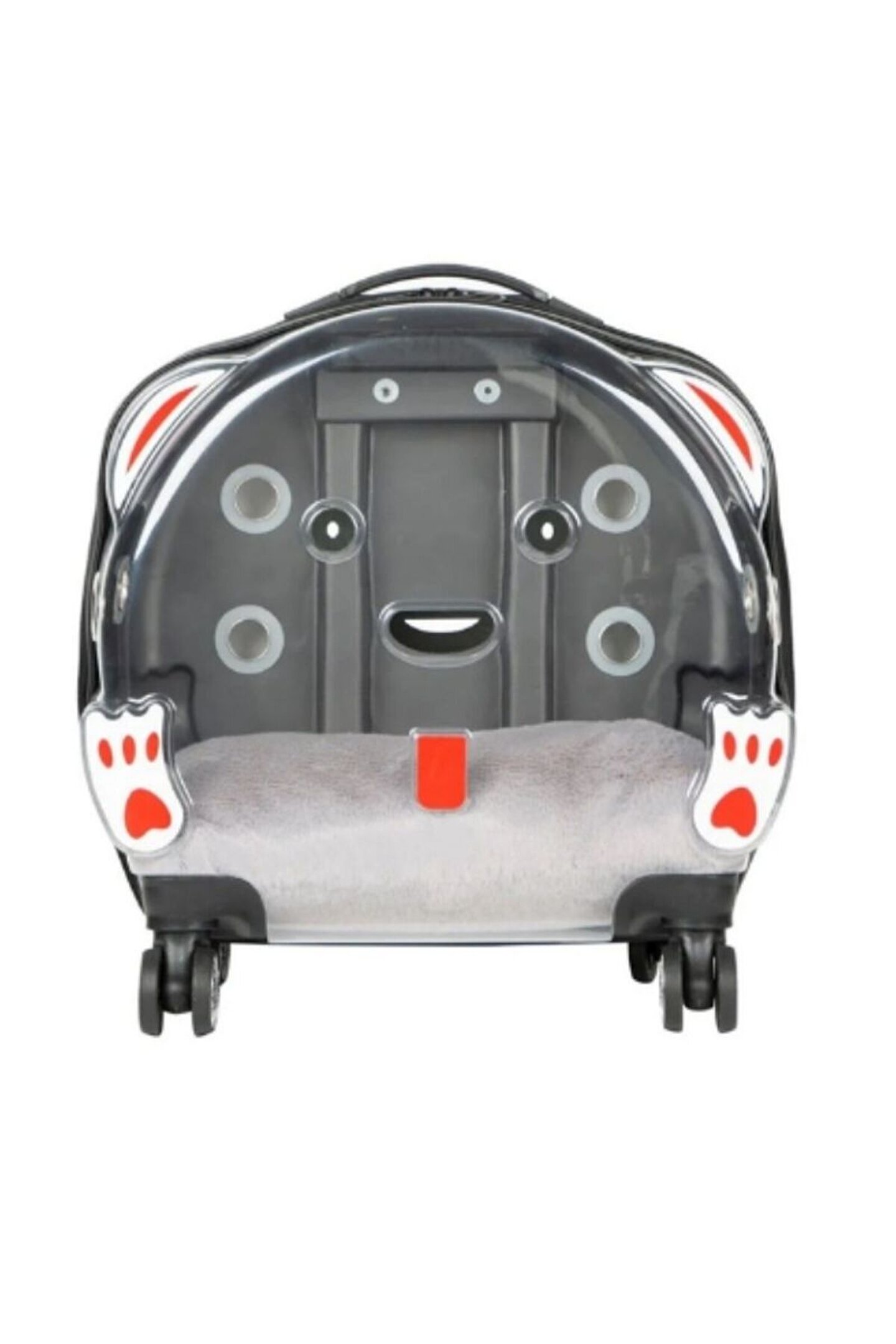 Şeffaf Tekerlekli Kedi Köpek Taşıma Valizi Çekçekli Büyük Model Açık Gri