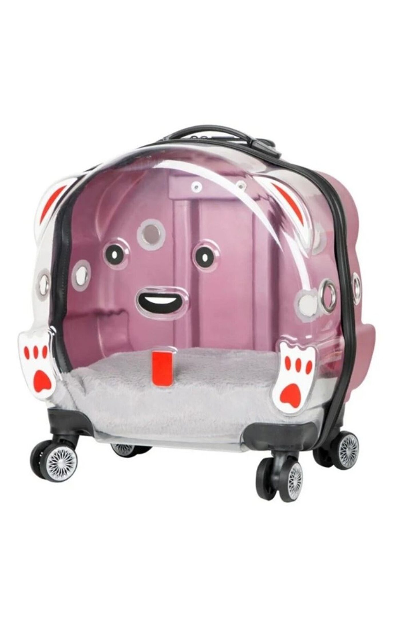 Şeffaf Tekerlekli Kedi Köpek Taşıma Valizi Çekçekli Büyük Model Açık Gri