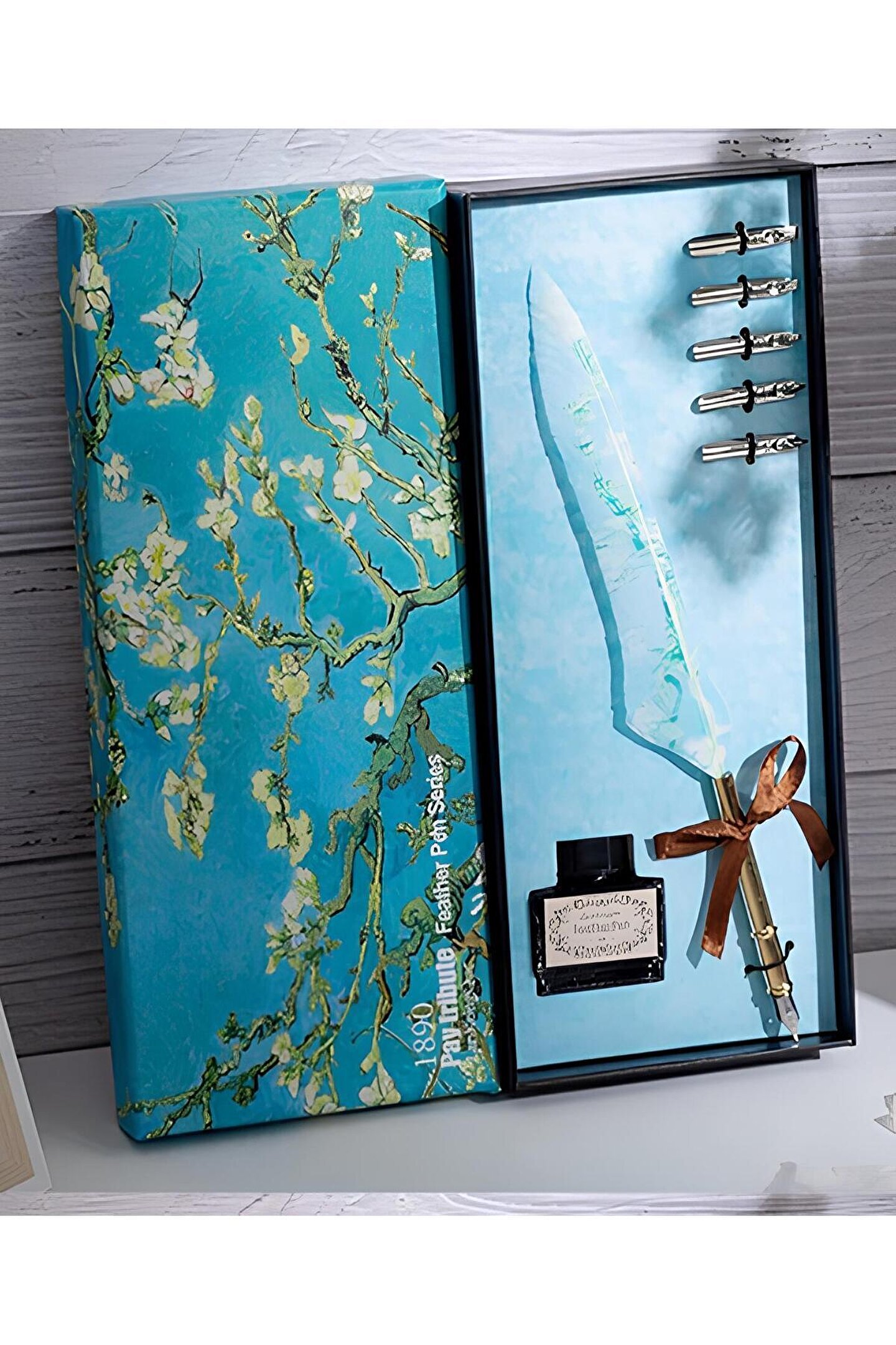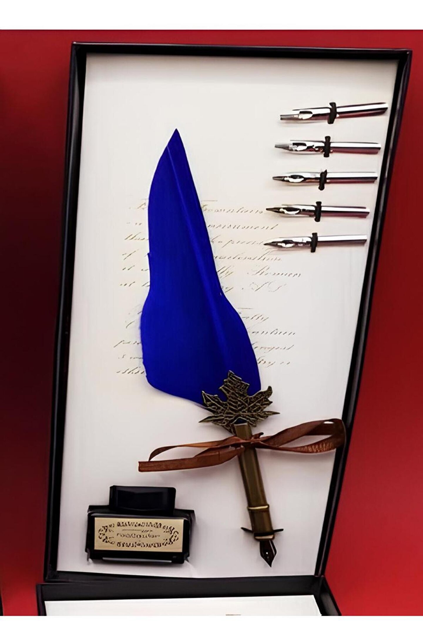 Eğitmeninize, sevdiğinize, öğrencinize alabileceğiniz en anlamlı ve güzel hediye Mavi, şarap, gri, beyaz renk seçenekleri mevcuttur Içerik Gerçek kuş tüyü divit bir kalem 6 farklı boy yedek kalem ucu Yazı mürekkebi (siyah) Metal işlemeli kalem tutucu;