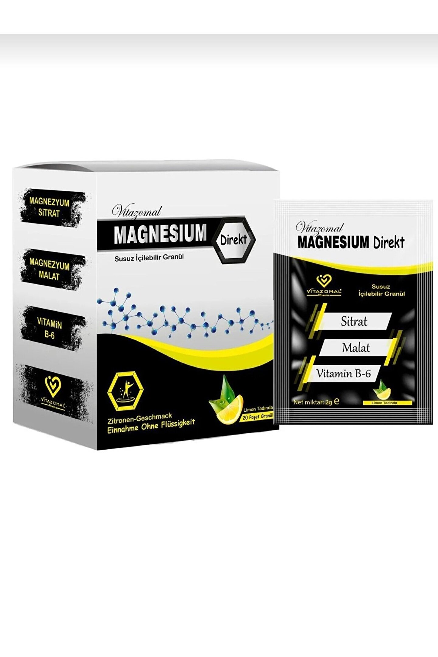 Magnezyum Direkt (SUSUZ IÇİLEBİLİR GRANÜL) 20 Saşe Toz Kas Krampları Yorgunluk Magnezyum Takviyesi