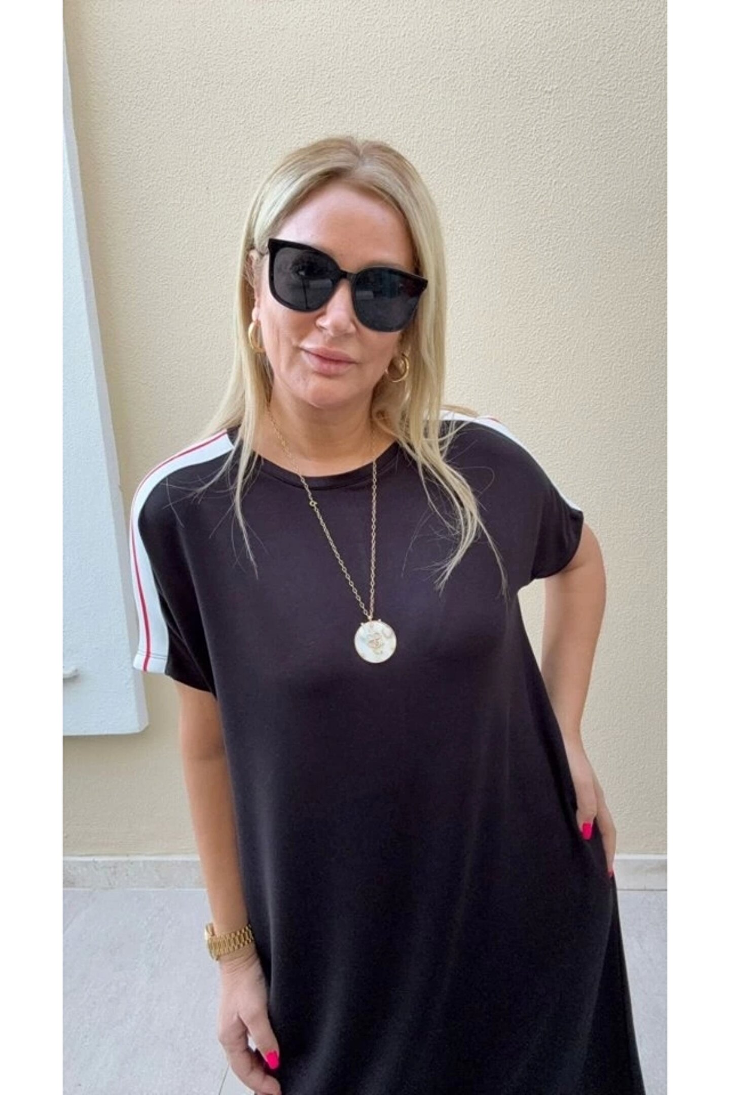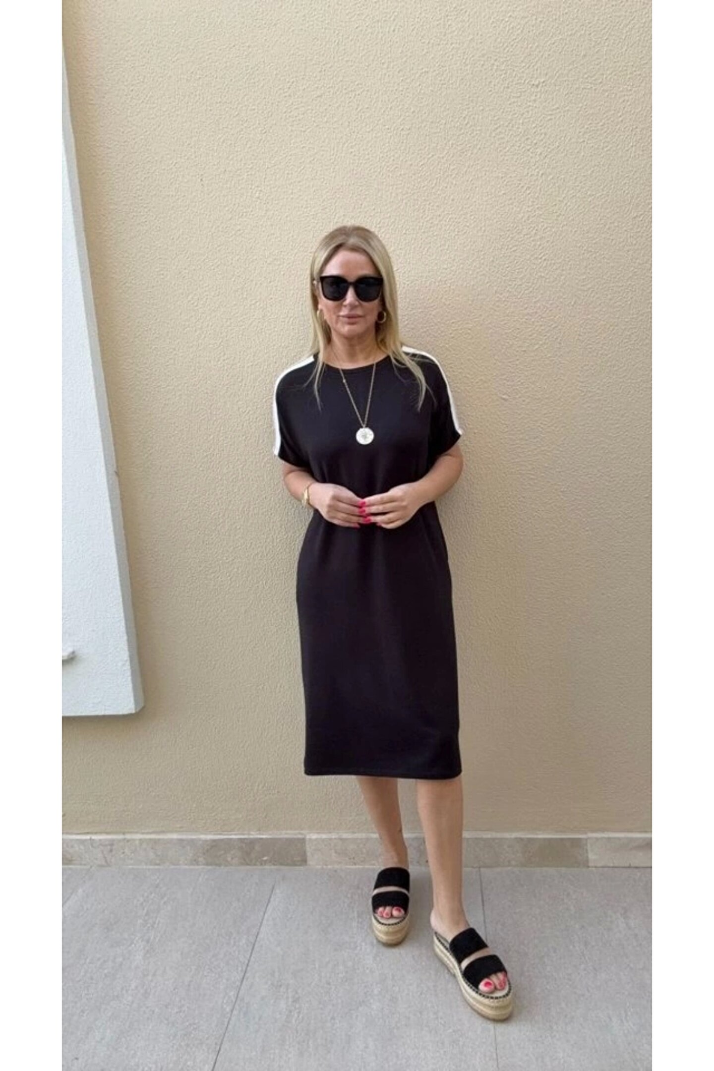 Kadın Kısa Kollu şerit Detay Midi Boy Elbise