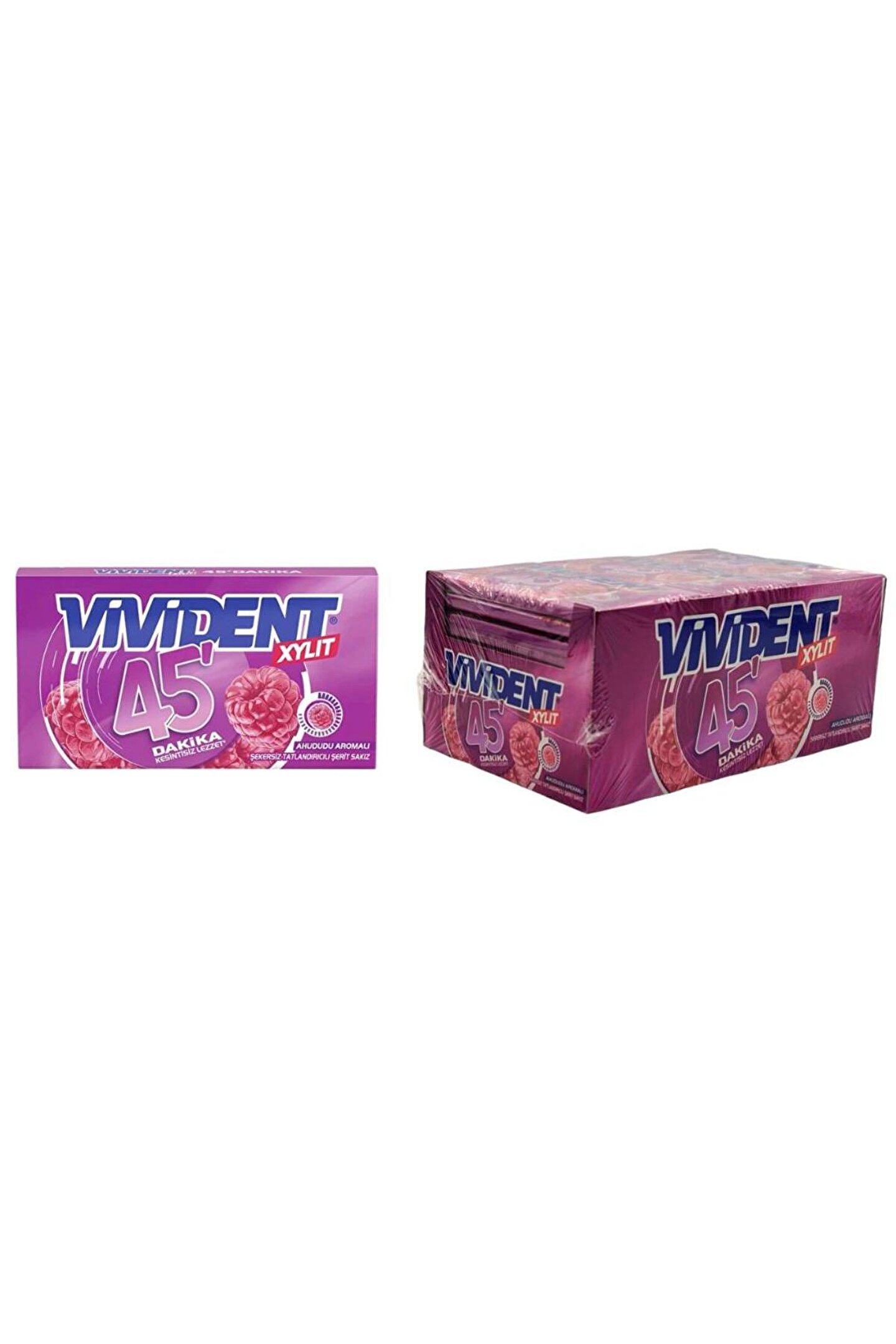 Vivident XYLIT 45 Dakika Ahududu Aromalı Şekersiz Sakız 26 g x 18 Adet Ahududu aromalı, şekersiz draje sakız.; Uzun süre ferahlık hissi sunar.; 18 adet x 26 g paket.