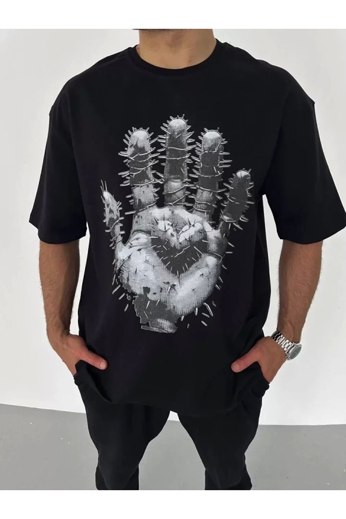 VogueEra Unisex Bisiklet Yaka Baskılı Oversize T-Shirt - Siyah