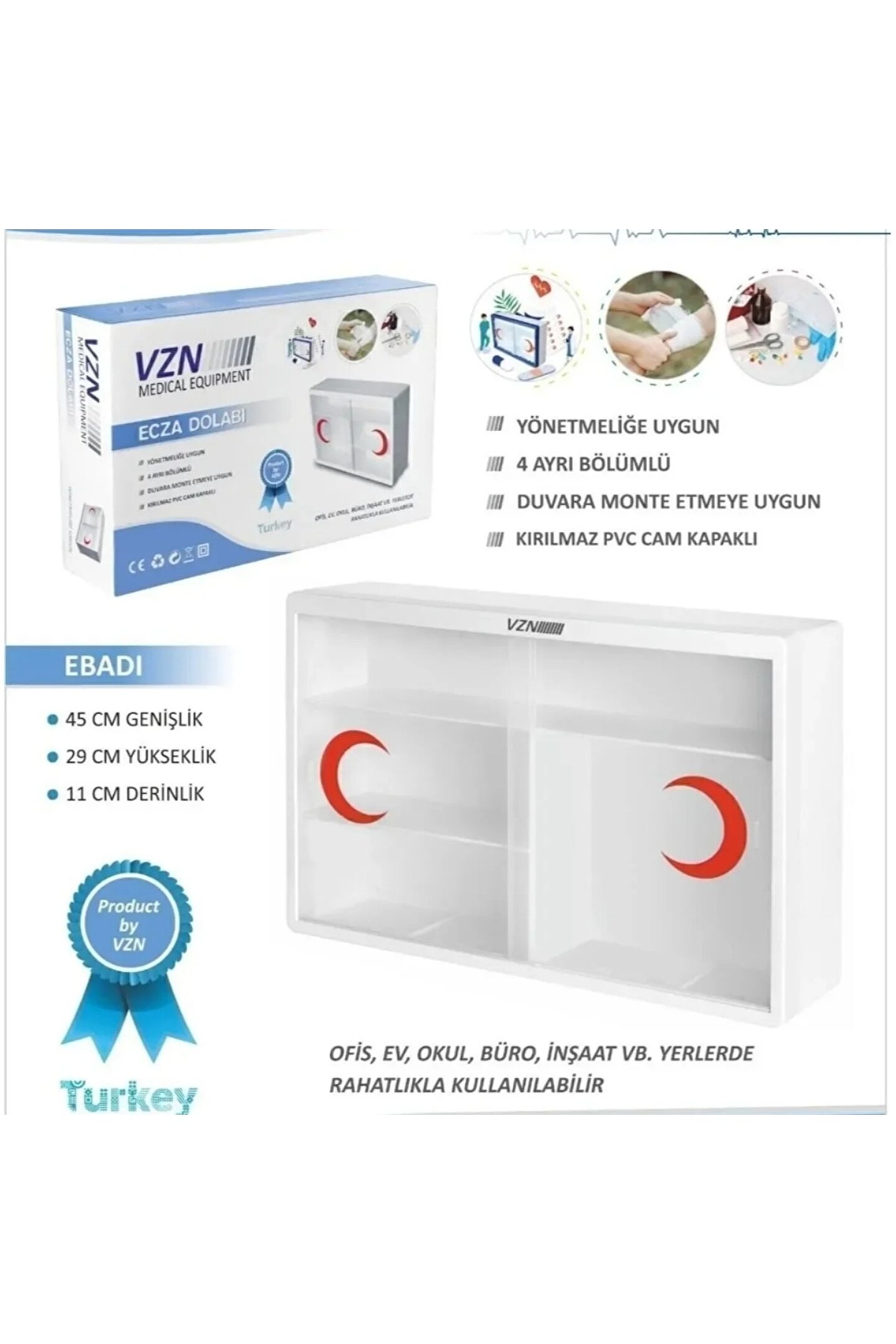 VZN Ecza Dolabı kırılmaz pvc cam kapaklı müfredata uygun