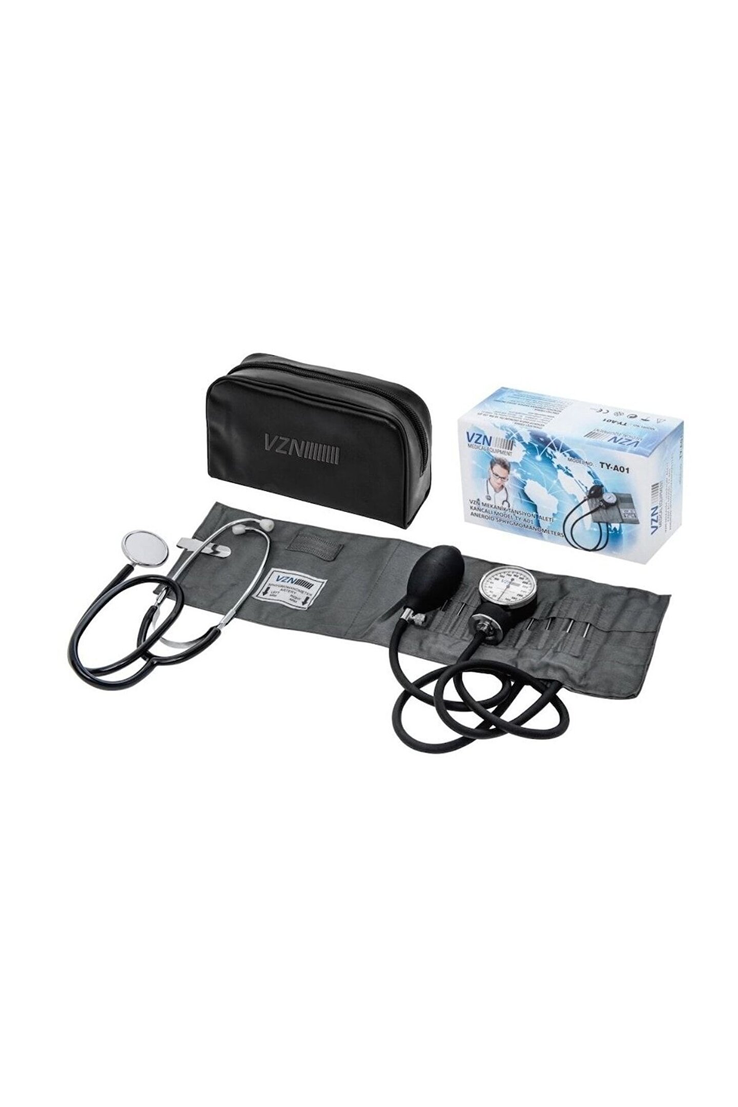 Ürün Detayları Vzn TY-A01 Stetoskoplu Mekanik Tansiyon Aleti Yanılma Olmadan Ölçüm Değerleri Tansiyon ölçümü yaparken asla yanılma olmasın! Değerlerinizi en hassas şekilde görüntülemek isterseniz VZN tam da size göre demektir. ; Hassas ve güvenli algılaması sayesinde yanılmadan tansiyon değerlerinizi görmeniz mümkün olacak. ; VZN asla yanılmaz! Geniş Ekranla Gelen Özel Tasarım Söz konusu tansiyon değerlerini kontrol etmekse, geniş ekrana ihtiyacınız olur. ; Geniş ekran üzerinden rakamlar ve diğer bilgileri rahatlıkla takip edebileceksiniz. ; Geniş ekranda yer alan büyük puntolar, renklendirmeler ve parlaklığa kadar her türlü detay düşünülmüştür. ; Kaliteli Tasarıma Sahip Ürün tasarımı yapılırken en kaliteli malzemeler tercih edildi. ; Bu malzemeler ürün kullanım süresini artırmaktadır. ; Ürün sorunsuz şekilde uzun seneler aynı verimle kullanılmaya devam edebilir. ; Ne darbe ne de diğer dış koşullar cihazda soruna neden olur. ; Kompakt Tasarımıyla Biliniyor Ürün kompakt tasarıma sahip olduğundan hem rahat kullanılıyor hem de rahat saklanıyor. ; Yerden çok alan kayıp edilmesine neden olmuyor. ; Kompakt tasarımına bayılacaksınız! Hem Şık Hem İşlevsel Ürün Sadece yanılma olmadan tansiyon ölçmenizi sağlamakla kalmaz aynı zamanda şıklığı ile de büyülemeyi başarır. ; Rengi, zarif görünümü, ölçüleri ile estetik anlamda da kullanıcılarını memnun eder. ; Hem şık hem de işlevsel olması ile bilinir. ; Değerleri Hafızada Tutma Özelliği Tansiyon ölçme aleti değerleri aklında tutar. ; Son 90 ölçüm için hafızaya değerleri atar ve bu değerleri rahatlıkla görmenizi sağlar. ; Mekanik tansiyon aleti genişleyen manşetleri ile en geniş kollara sahip olan kişilerin bile rahat tansiyon ölçümü yapmasına yardımcı olur.;
