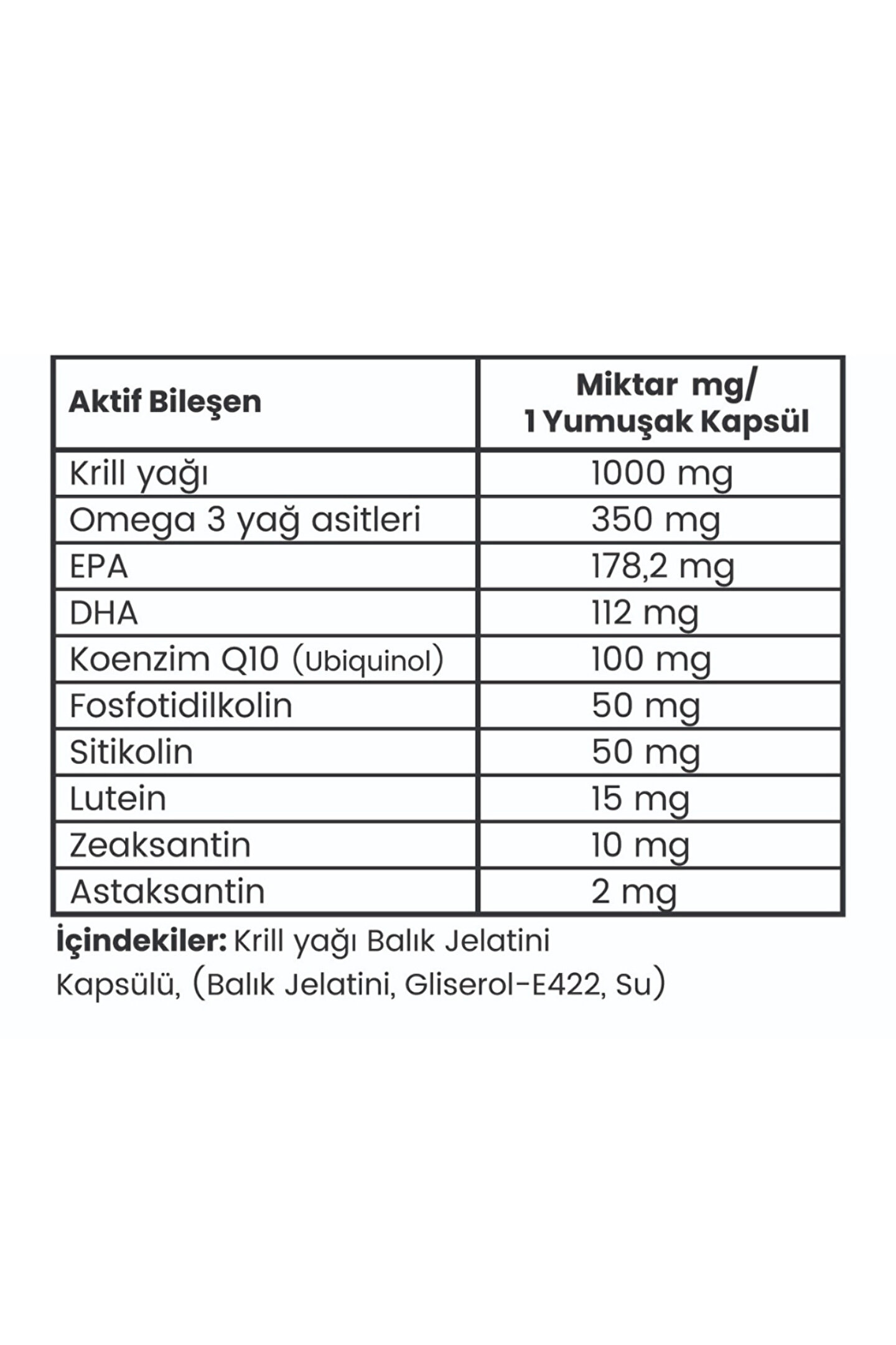 Walker’s Antarctic Krill Oil, saf krill yağı ile desteklenen, Sitikolin (Cognizin), Lutein ve Koenzim Q10 içeren premium bir takviye edici gıdadır.; Fosfolipit yapısı sayesinde Omega 3 yağ asitlerinin vücut tarafından yüksek verimlilikle emilmesini destekler.; Kalp Fonksiyonları: İçeriğindeki EPA ve DHA, kalbin normal fonksiyonuna katkıda bulunur.; (Faydalı etki günde 250 mg EPA ve DHA alındığında sağlanır).; Görme Yetisi: DHA, normal görme yetisinin korunmasına katkıda bulunur.; (Faydalı etki günde 250 mg DHA alındığında sağlanır).; Beyin Fonksiyonları: DHA, normal beyin fonksiyonlarının korunmasına yardımcı olur.; (Faydalı etki günde 250 mg DHA alındığında sağlanır).; Gelişmiş Formül: Standart balık yağlarından farklı olarak, doğal içeriğinde bulunan Astaksantin ile korunan fosfolipit formda sunulmaktadır.; Sitikolin ve Lutein ile zenginleştirilmiş içeriği günlük beslenme rutininize değer katar.; Kullanım: 11 yaş ve üzeri yetişkinler için günde 1 yumuşak kapsülün bol su ile tüketilmesi tavsiye edilir.
