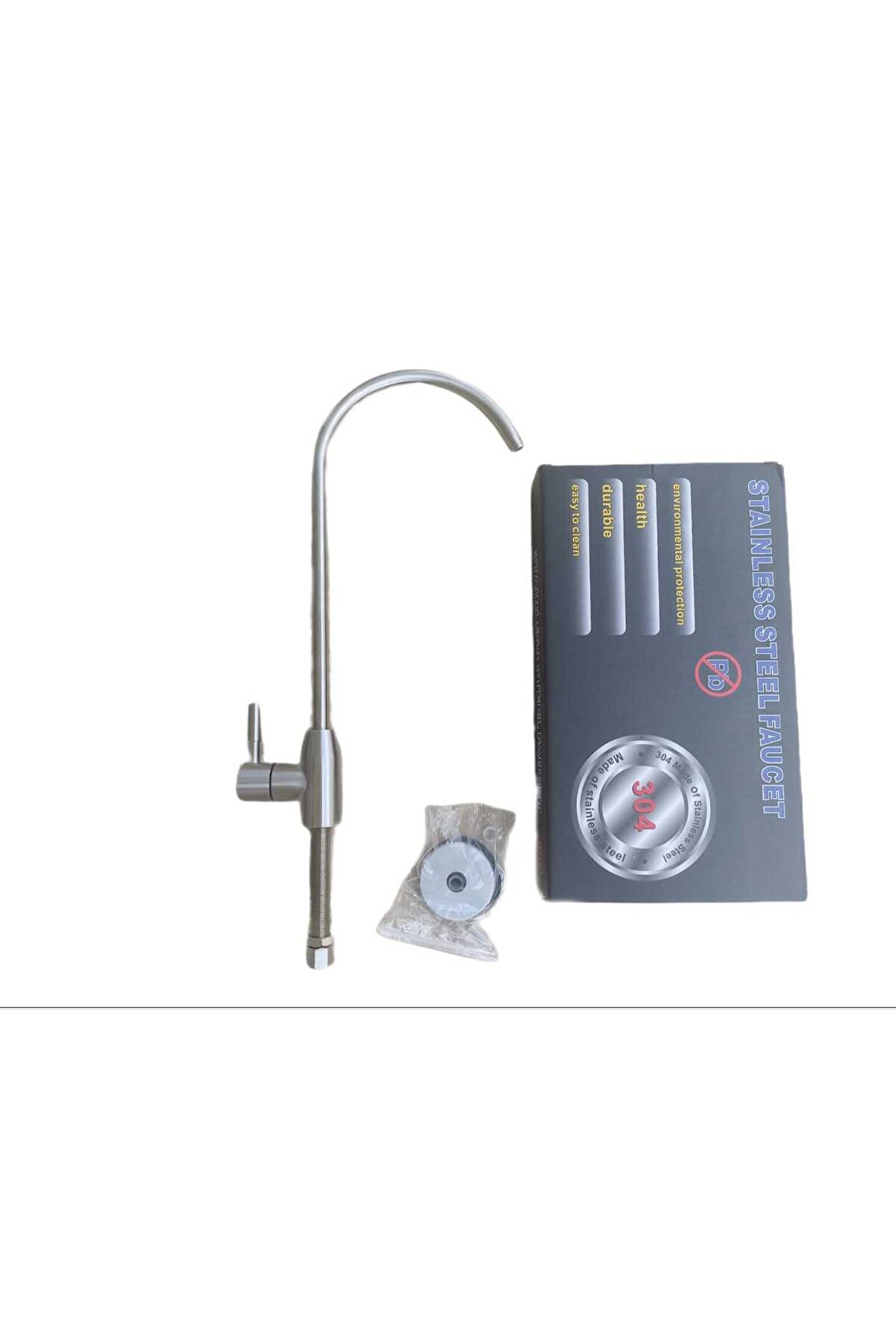 Paslanmaz Çelik Su Arıtma Musluğu – 304 Steel Dayanıklılık Water White Paslanmaz Çelik Arıtma Musluğu, 304 kalite çelik yapısıyla uzun ömürlü, hijyenik ve sızdırmaz kullanım sunar.; Modern ve sade tasarımıyla mutfağınıza estetik bir görünüm katarken, su arıtma cihazınızdan temiz ve güvenli içme suyu sağlar.; Tüm tezgâh altı su arıtma sistemleriyle tam uyumludur.; Ürün Özellikleri: • 304 kalite paslanmaz çelik gövde • Korozyona ve paslanmaya karşı dayanıklı yapı • Sızdırmaz vana sistemi ile uzun ömürlü kullanım • Montaj için gerekli rondela, conta ve adaptör seti dahil • Tüm su arıtma cihazı markalarıyla uyumlu • Marka: Water White | Malzeme standardı: 304 Steel Teknik Bilgiler: • Malzeme: 304 paslanmaz çelik • Bağlantı tipi: 1/4" dişli bağlantı • Kullanım: Tüm tezgâh altı su arıtma sistemleriyle uyumlu • Renk: Mat çelik Türkiye geneli kargo, İzmir içi profesyonel montaj desteği ile.; Water White orijinal parçalarıyla uzun ömürlü ve güvenli su kullanımı.;