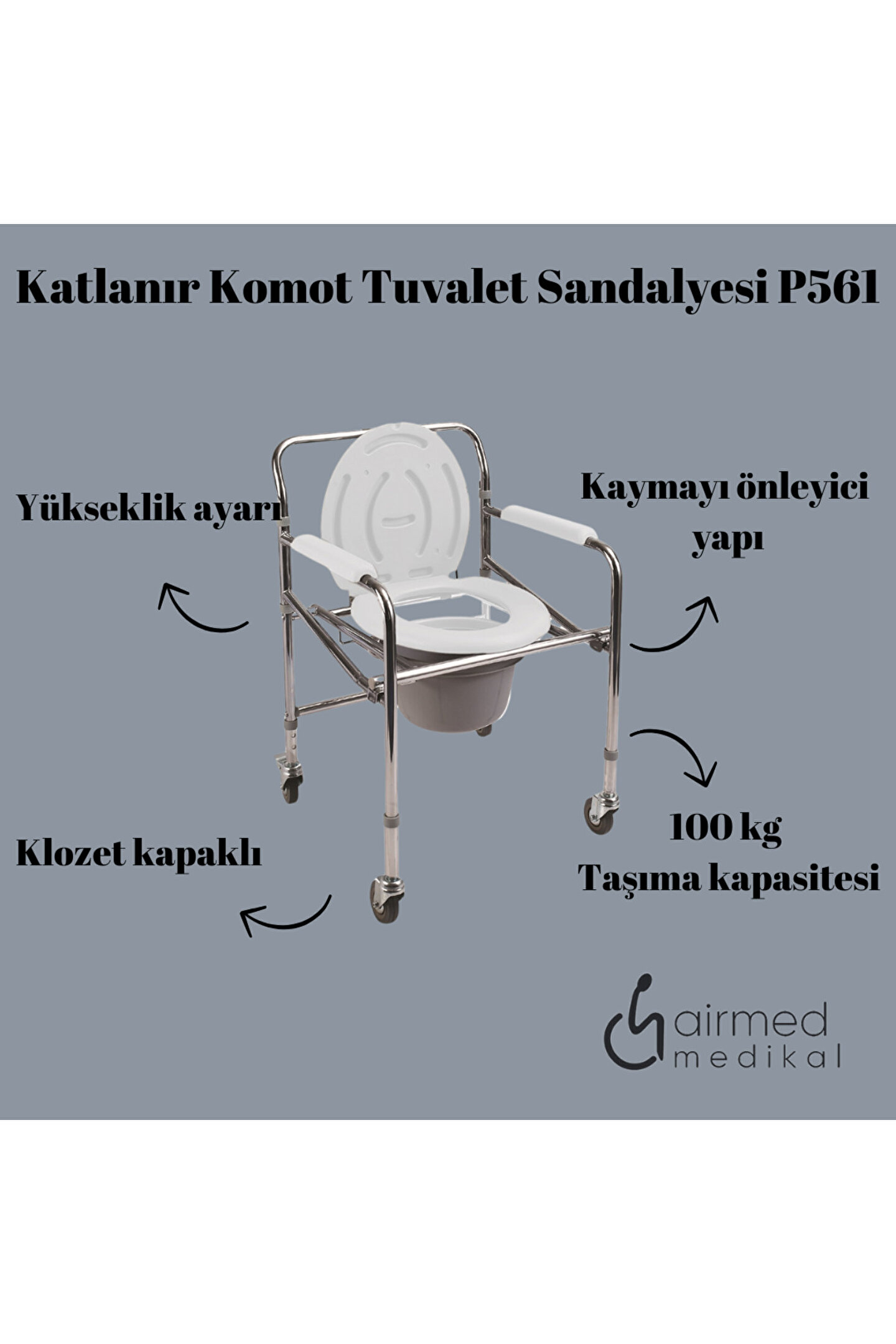 Poylin P561 Katlanır Komot Tuvalet Sandalyesi Poylin P561 Komot Klozetli Tekerlekli Klozetli Tekerlekli Banyo Tuvalet Sandalyesi Banyo Tuvalet Sandalyesi HASTA TUVALET SANDALYESİ LAZIMLIĞI dört tekerlekli oluşuyla kullanıcılara rahat transfer imkanı sağlamaktadır. ; Alimünyum şase olması nedeniyle hafiftir. ; Poylin P 561 Komot modeli katlabilir özelliktedir. ; Katlanabilir özelliği ile çok yer kaplamaz. ; Kovasınıçıkardığınız taktirde klozet uyumludur. ; Paslanmaz yapısı sayesinde banyo yapımına uygundur. ; En pratik modellerimizden biridir. ; Poylin P561 Komot Tuvalet Sandalyesi.;
