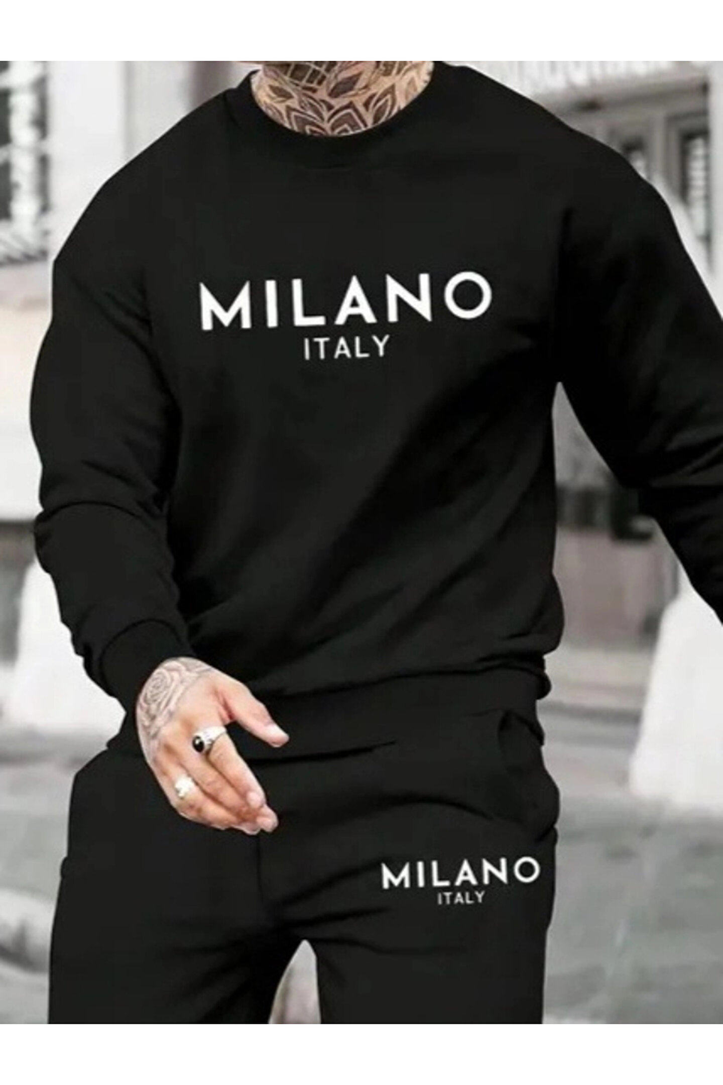 Erkek Uzun Kollu Baskı Detaylı Iki Iplik Takım