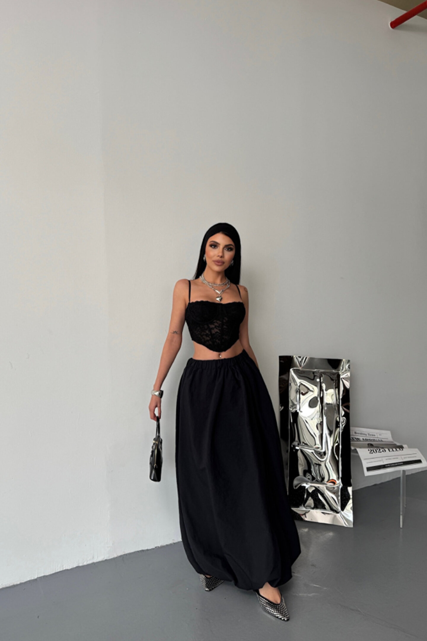 BEL LASTİKLİ BALON ETEK ŞANEL BOY SOFT KUMAŞ - Siyah
