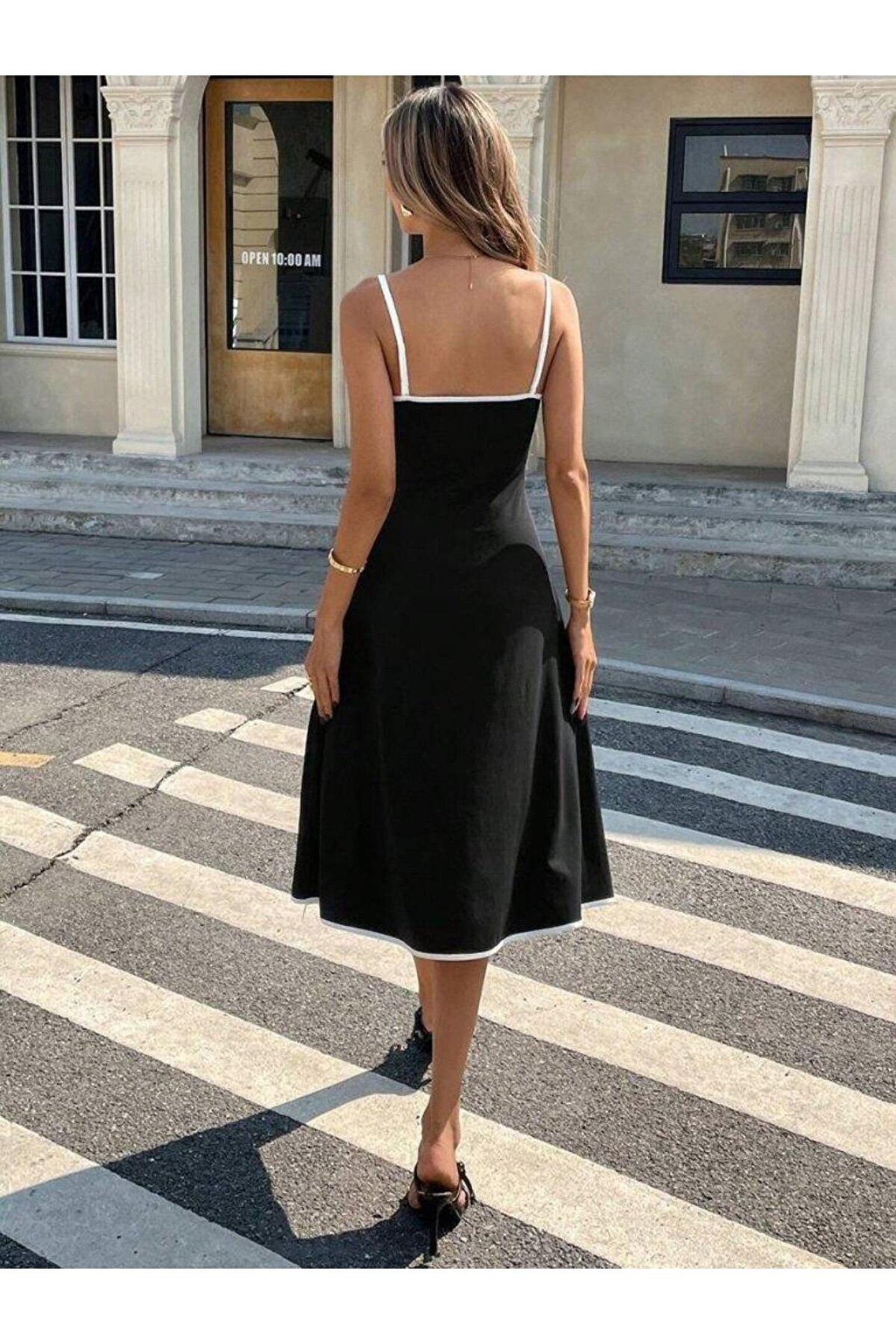Kadın Ip Askılı Geniş V Yakalı Midi Janjan Krep Elbise