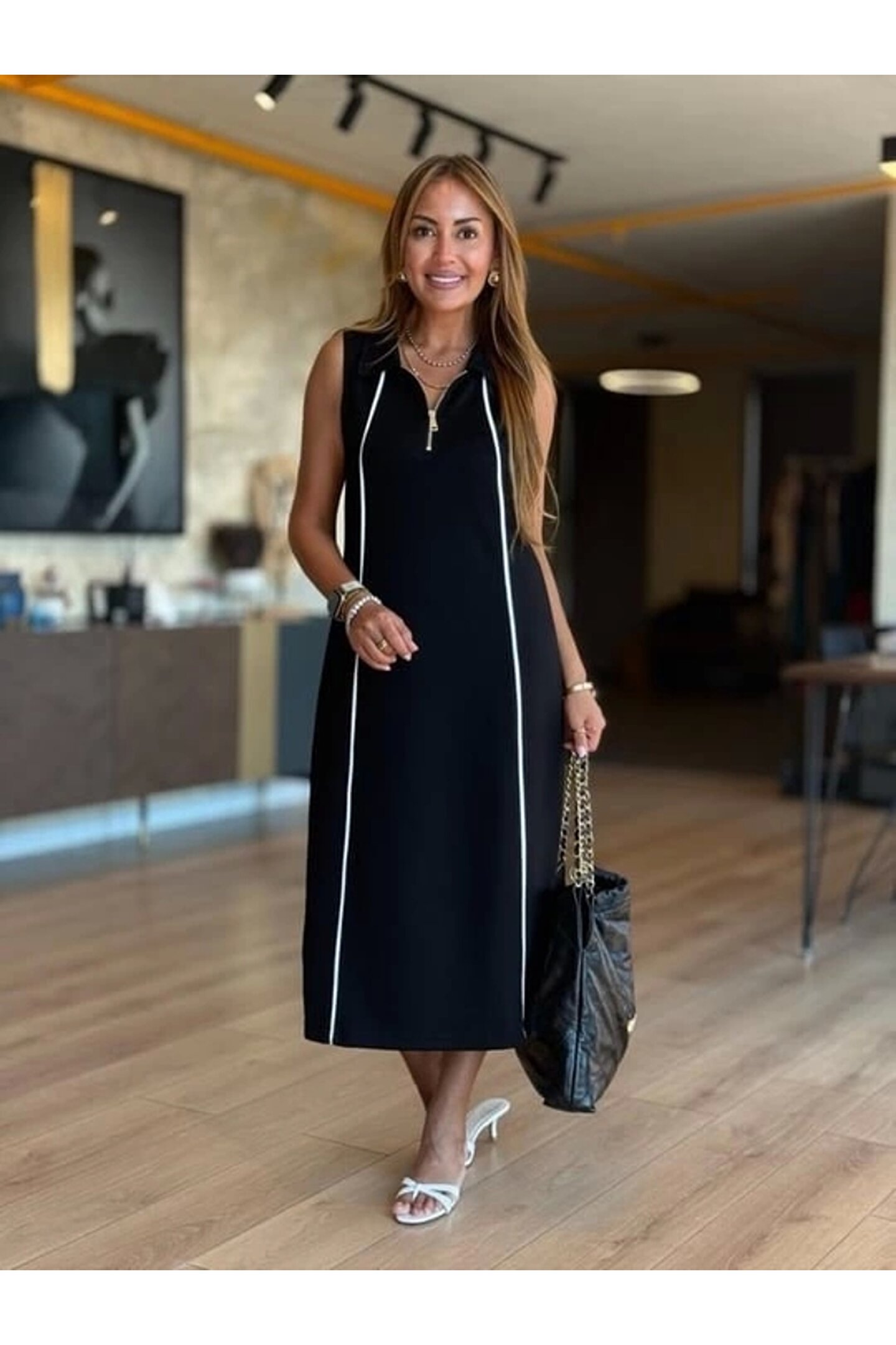 Kadın Modal Kumaş şerit Detaylı Fermuarlı Midi Elbise