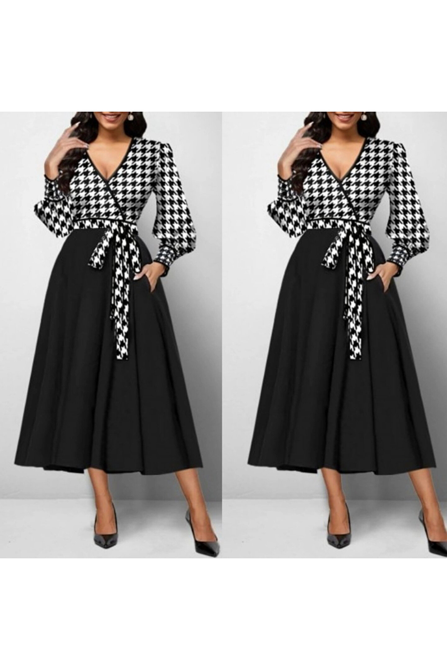 Kadın Uzun Kollu Kruvaze Yaka Dalgıç Krep Midi Boy Elbise
