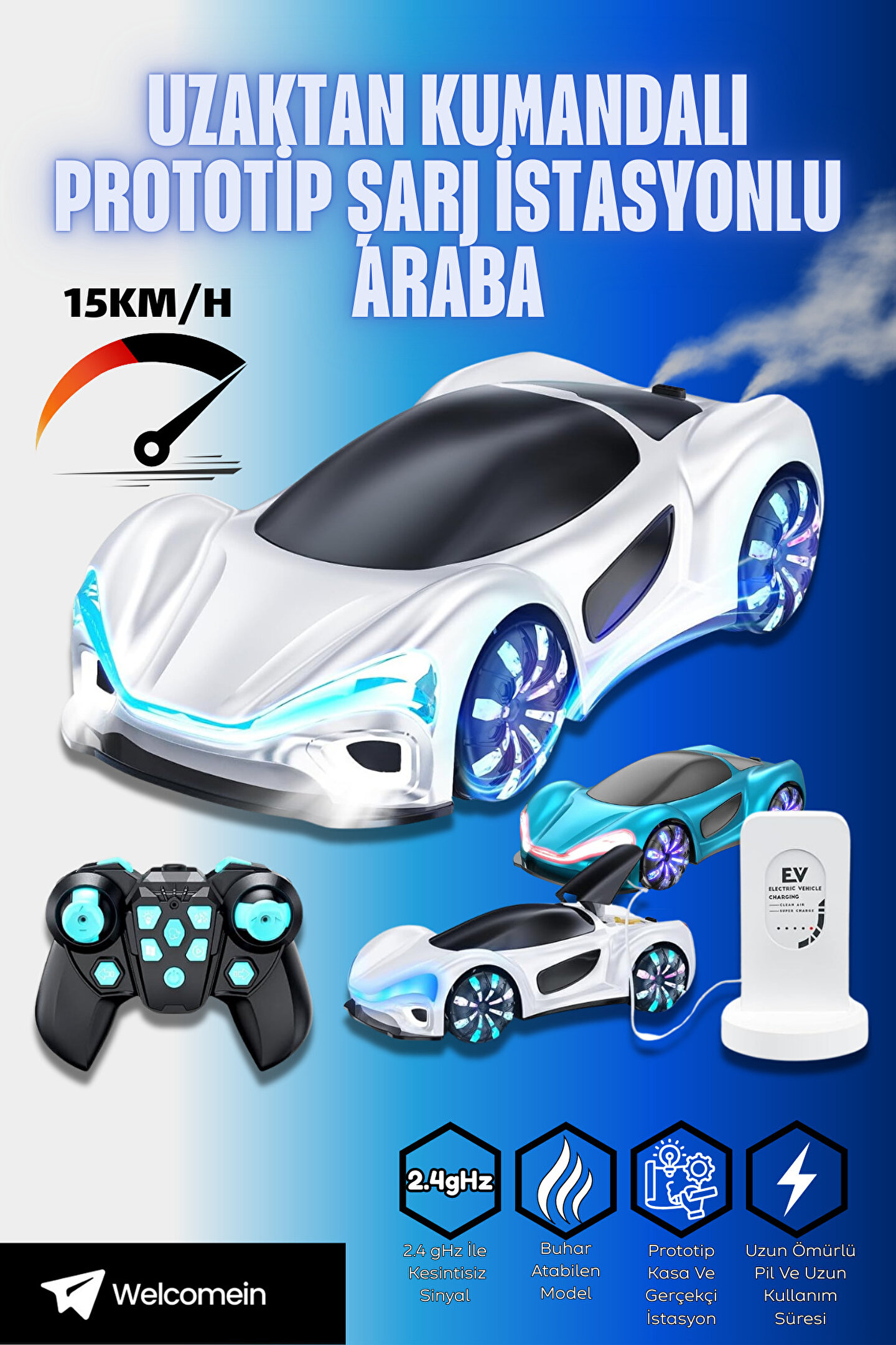 Şarj istasyonu sayesinde pratik bir kullanım sunan bu spor araba, uzun süreli oyun keyfi için tasarlanmıştır. Işık ve müzik efektleri ile oyunu daha eğlenceli hale getirirken, çocukların hayal gücünü geliştirir. Dayanıklı gövde yapısı sayesinde darbeye karşı dirençli olup uzun ömürlü kullanım sağlar.