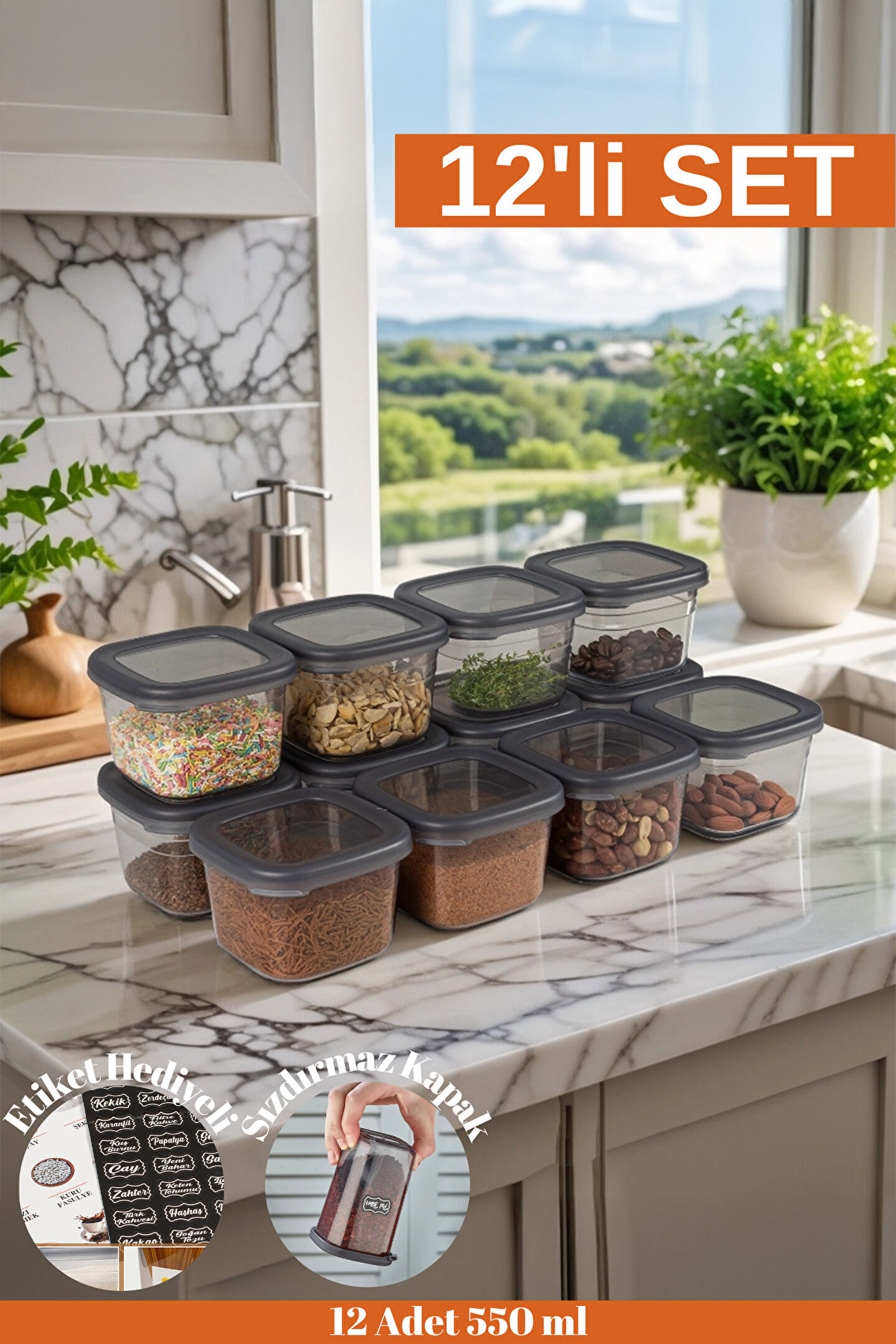 welcomein 12 Adet 24 Parça 0,55 Litre Kahvaltılık Erzak Saklama Kabı Baharatlık Seti 20 Etiket Hediyeli